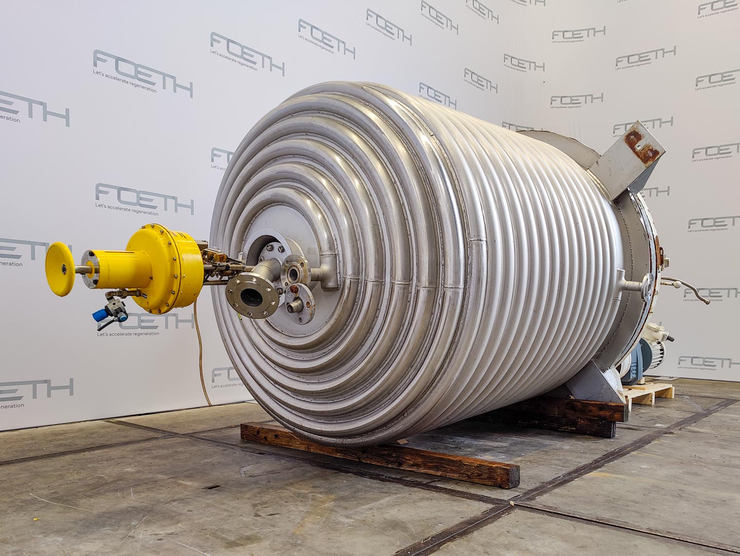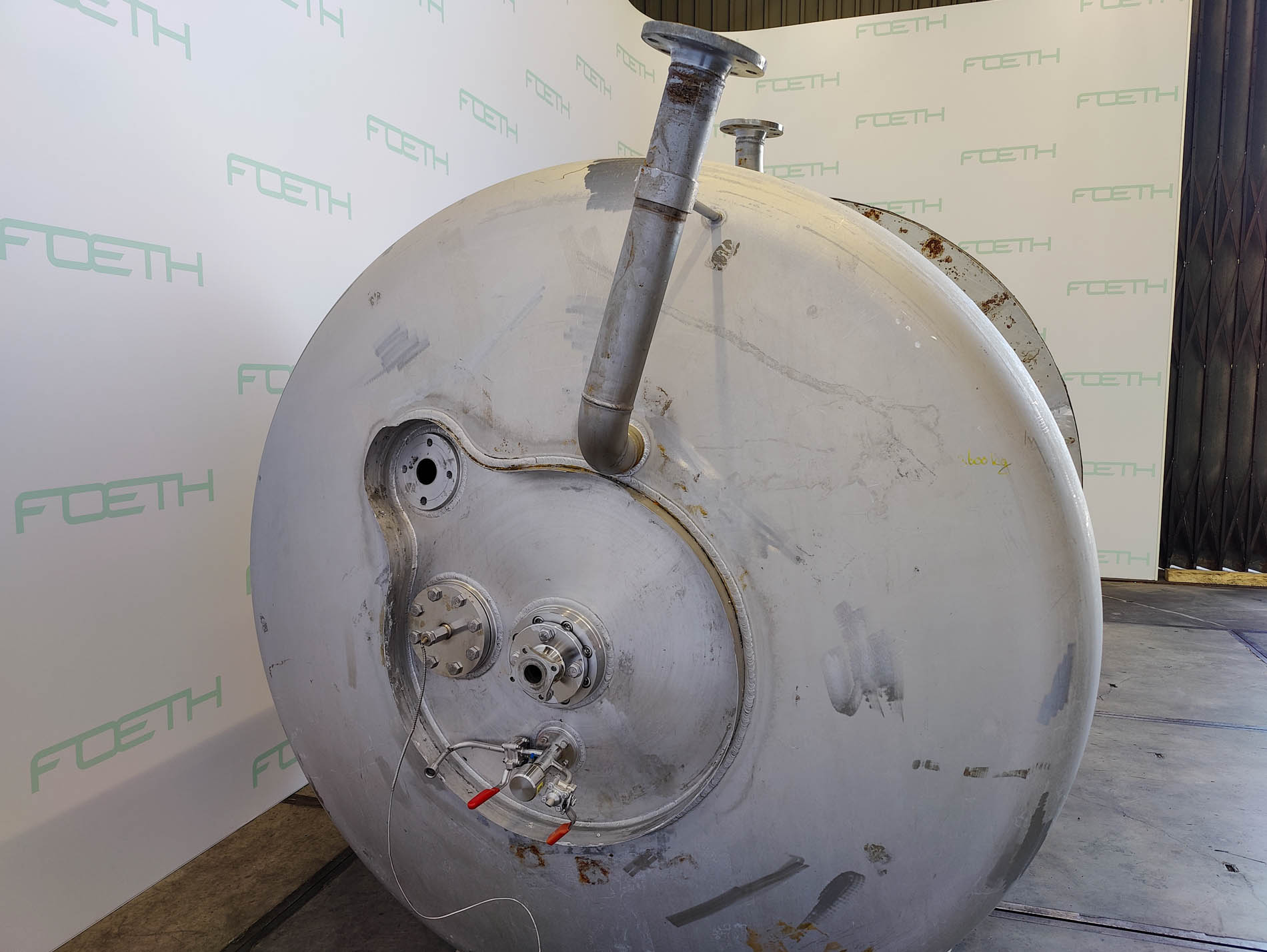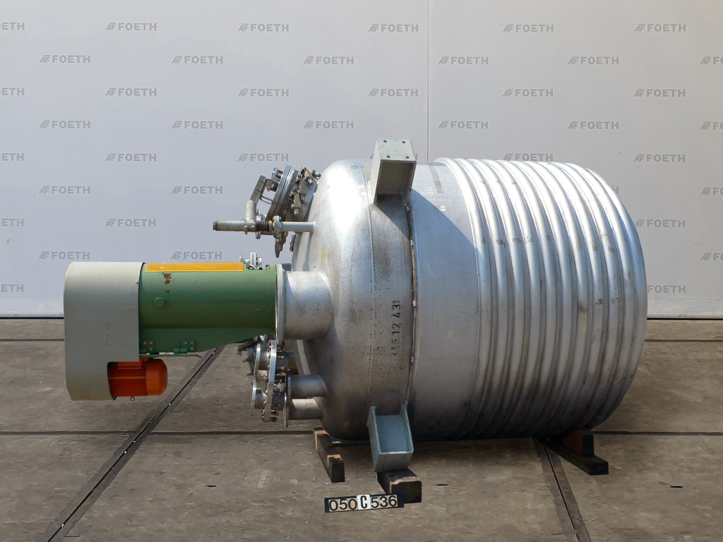General SKU345S768 MakeHinke Tankbau GmbH (AT) Type16.620 Ltr No.8295 Year of construction2000 LocationBarneveld Pressure Working pressure3.5 Bar Vacuum possiblecheck Working pressure jacket9 Bar Vacuum possible jacketcheck Main Features MaterialStainless steel Volume13000 Ltr. Motor30 KW Specified Features - Stainless Steel Reactor MaterialStainless steel 1.4571 (316Ti) Stainless Steel Reactors Reactorcheck Capacity13.000 Ltr (max.: 16.620 Ltr) Vessel sizesdia. 2400x4000 mm Dished bottomcheck Dished top sidecheck ManholeDN600 Top connectionsDN200, DN150, DN100, DN80, DN50 OutletDN80 Half coil jacketed(447+57 Ltr) Max. temperature-25/200 °C With paddle stirrercheck (SDR 45-10 S) Motor30,0 kW, 400/690 Volt (EExdeIICT4) Speed mixing shaft65 rpm Information Floorspace2,8x2,4 m Total height4 m ATEX compatiblecheckPlastic & polymersCatalysts & fillersStain ...