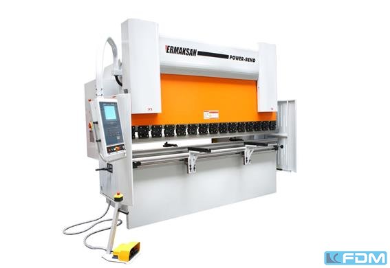 pressure: 175 t chamfer lenght: 3100 mm distance between columns: 2600 mm column arm: 410 mm ram stroke speed: 180 mm/sec work speed: 10.0 mm/sec return speed: 135 mm/sec work stroke: 275 mm dayligth: 550 mm table height: 900 mm table width: 90.0 mm oil volume: 200 ltr. voltage: 400 Volt total power requirement: 15.0 kW weight: 9450 kg range L-W-H: 4250 x 2150 x 2800 mm -------------------------------------------------- Press brake with special equipment increased installation height increased cylinder stroke as well as increased bending beam speeds -------------------------------------------------- Furnishing: - DELEM CNC control model DA-58T graphic/touch screen 2D graphical programming 15 TFT color screen with high resolution Bending sequence calculation Product programming and real size display USB interface - Motorized backgauge with R-axis, on ball screws - X = 800 mm R = ...