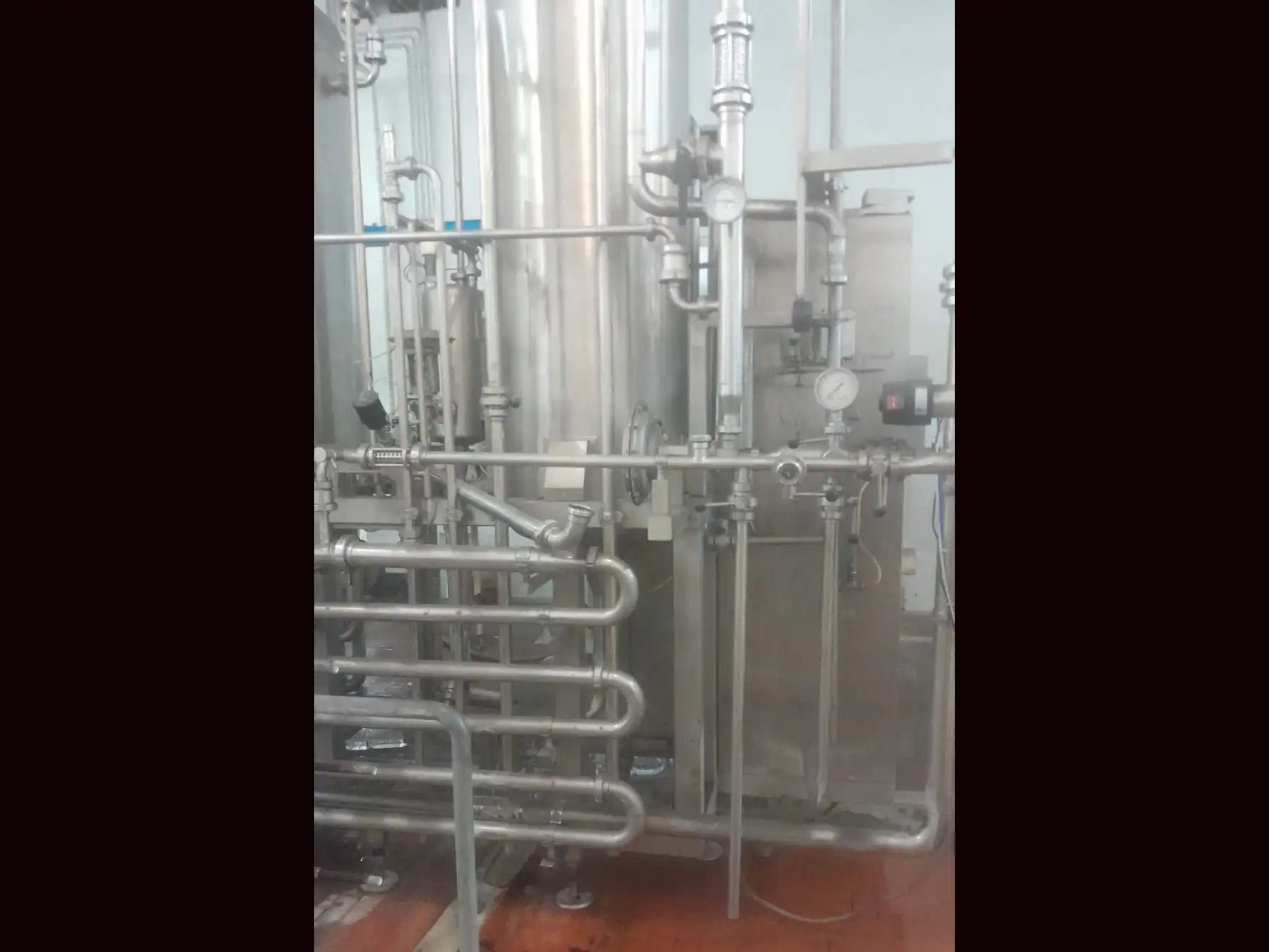 Overview This premix beverage mixer was manufactured in 1969 by Stork Jansen & Sutorius N.V. The machine is designed for the production of carbonated and non-carbonated soft drinks as well as carbonated water. It is configured as a multi-tank mixing and carbonation system including product tank, vacuum tank and saturator for consistent mixing and CO₂ dosing. The unit has been fully refurbished in 2020, is currently in operation, and available for inspection. Technical data Capacity: approx. 15,000 L/h Application: Beverage mixing (carbonated and non-carbonated soft drinks, carbonated water) Configuration: Multi-tank system (product tank, vacuum tank, saturator) Operating pressure: up to approx. 6 bar (typical 1.2 – 1.4 bar) CO₂ content: approx. 6.5 – 7 g/l Electrical: 380 V, 3-phase Drive power: approx. 5.5 – 7.5 kW Scope of Delivery Premix beverage mixer | Stork J ...