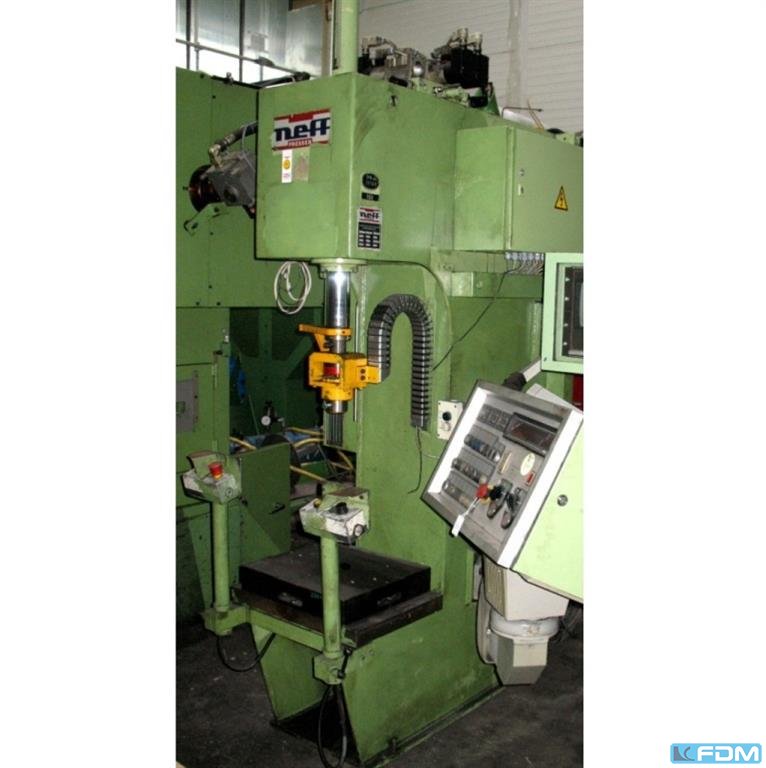 Pressure:40 t throat:330 mm stroke:250 mm distance table/ram, max. stroke up, adjustment up:450 mm table surface area:800 x 500 mm hole in the table:100 mm table height over floor:900 mm ram surface:100 mm Speed down:406 mm/s Speed up:393 mm/s Working speed:14 mm/s oil volume:350 l power requirement:7,5 kW weight:4,6 t dimensions (WxDxH):1,3 x 2,3 x 3,4 m German Safety: permitted for manual loading:CE-sign depth stop:mechanical