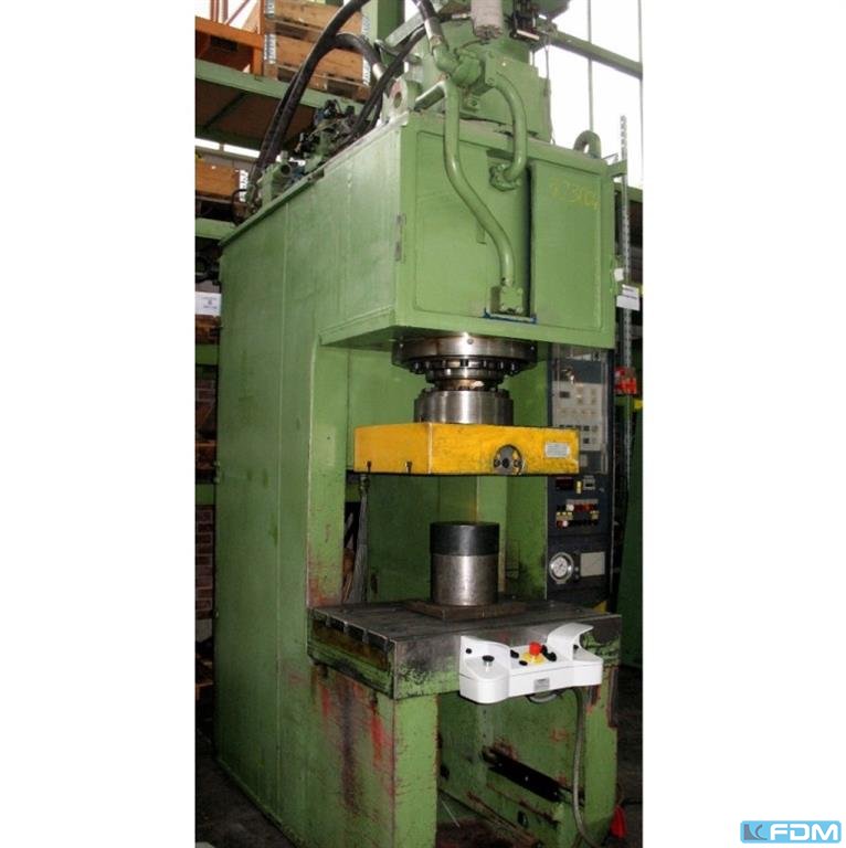 pressure:100 t throat:320 mm stroke:160 mm distance table/ram, max. stroke up, adjustment up:480 mm table surface area:630 x 550 mm hole in the table:200 mm table height over floor:860 mm ram surface:560 x 450 mm oil volume:500 l power requirement:30,5 kW weight:6,4 t dimensions (WxDxH):1,6 x 2,0 x 2,9 m German Safety: permitted for manual loading:UVV 11.064 - VBG 7n5.2 cutting impact cushioning:hydraulic depth stop:mechanical