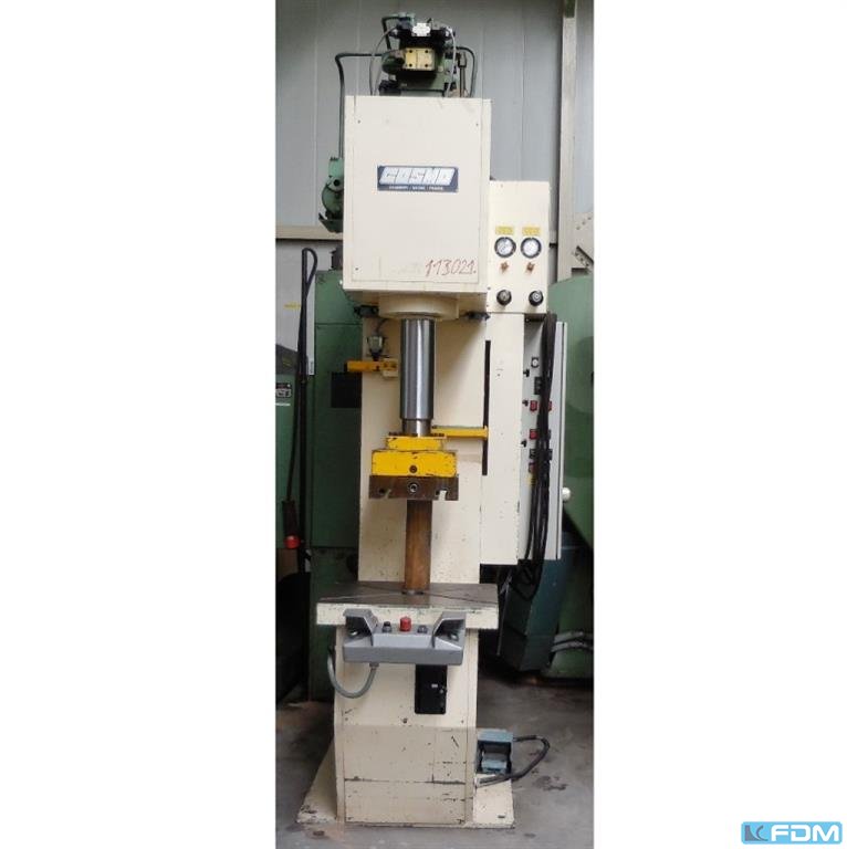 pressure:25 t throat:400 mm stroke:1000 mm distance table/ram, max. stroke up, adjustment up:1100 mm table surface area:620 x 620 mm Hole in the table:80 mm table height over floor:650 mm ram surface:110 mm speed down:300 mm/s speed up:500 mm/s working speed:14 - 85 mm/s oil volume:400 l power requirement:6,0 kW weight:3,8 t dimensions (WxDxH):1,5 x 2,1 x 3,9 m German Safety: permitted for manual loading:UVV 11.064 - VBG 7n5.2