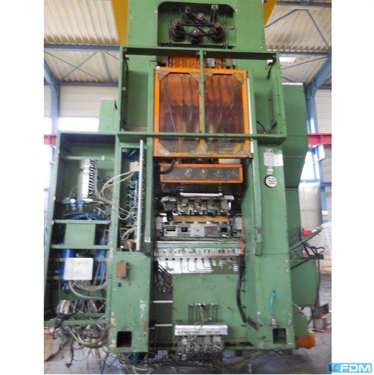 pressure:400 t distance between columns:1060 mm stroke:450 mm no. of strokes:15 - 30 /min distance table/ram, max. stroke up, adjustment up:1160 mm table surface area:1000 x 700 mm capacity of ejector in table:2 x 16 t ejector stroke of ejector in table:125 mm Die cushion pressure in table:120 t Die cushion stroke in table:2 mm capacity of ejector in ram:2 x 4 t stroke of ejector in ram:100 mm ram surface:1000 x 700 mm column travel -side:630 mm power capacity:55,0 kW weight:50,0 t die cushion in table:2. station
