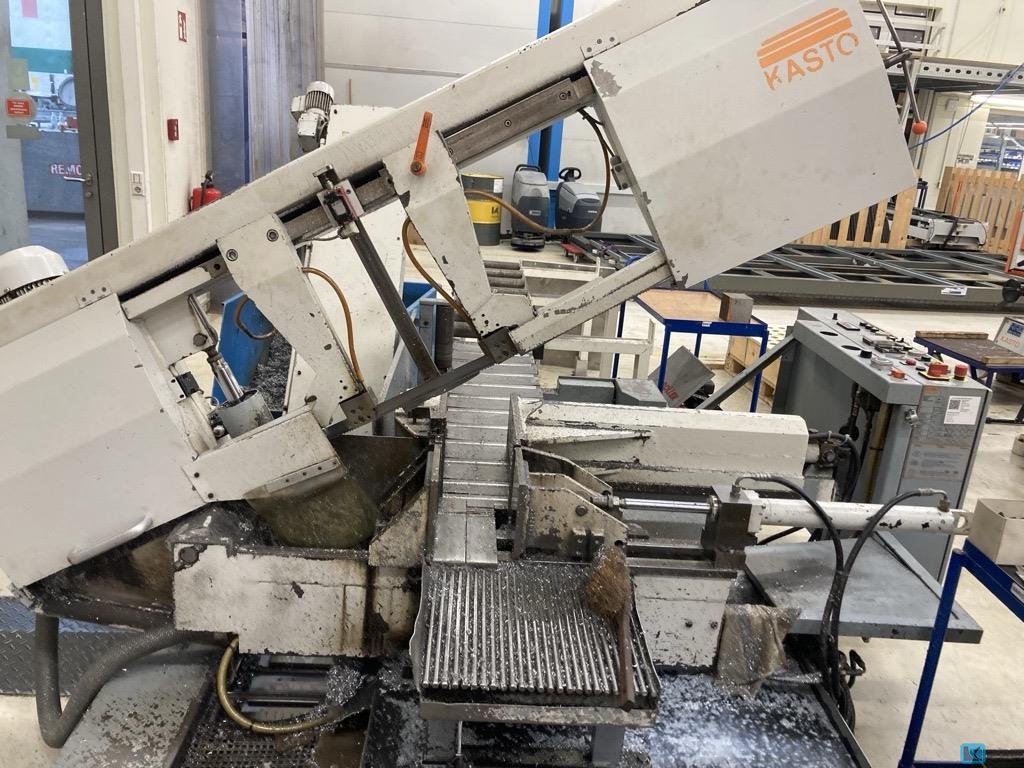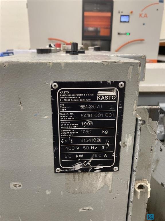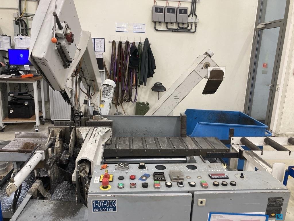 weight of the machine ca.:1750 kg sawing motor:2,2 kW total power requirement:5 kW cutting speed:17 - 90 m/min cutting diameter:320 mm cutting range max.:320 x 320 mm saw band length:4.930 x 34 x 1,1 mm feed length:max 9x 600 mm dimensions of the machine ca.:2,6 x 2,4 x 1,40 m Bandsaw automatic, straight cut, min. cutting diameter 10mm, min. cutting length 6mm, min. offcut 15mm (automatic 80mm), max. weight of material 400kg/m, coolant box 60l, pump 16l/min, clamping pressure 20-60bar, dimensions: chipconveyor 2.400x 950mm roller track 2.200 x 950mm, 5pcs. saws (new) 4.930 x 34 x 1,1mm operating manual,