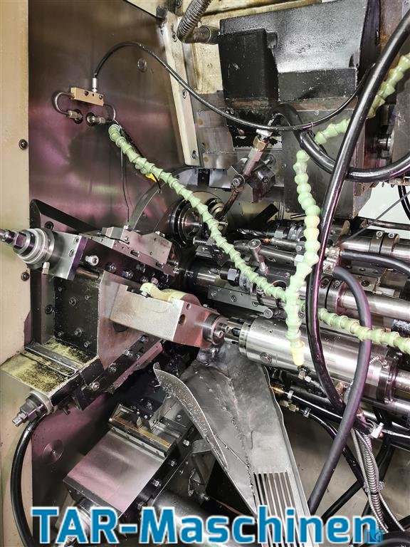 number of spindles:8 spindle passage:67 mm Cam controlled multi spindle automatic lathe, used 8 main spindles pick up in pos. 8 threading attachment CNC compound slide in pos. 5, also 2. speed in pos. 2 Hydraulic spindle brake in pos. 4 Incl. length measurement, incl. Brankamp cutting force monitoring tooling: could be different like pictures Please, contact us for getting more informations and pictures on mail@tar-mc.com or www.tar-mc.com