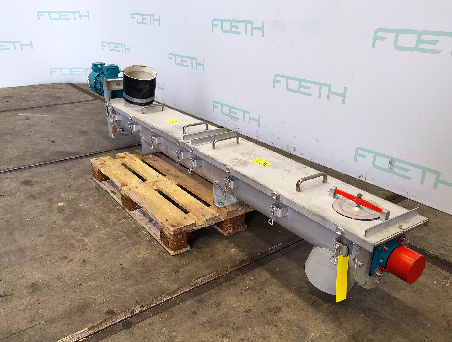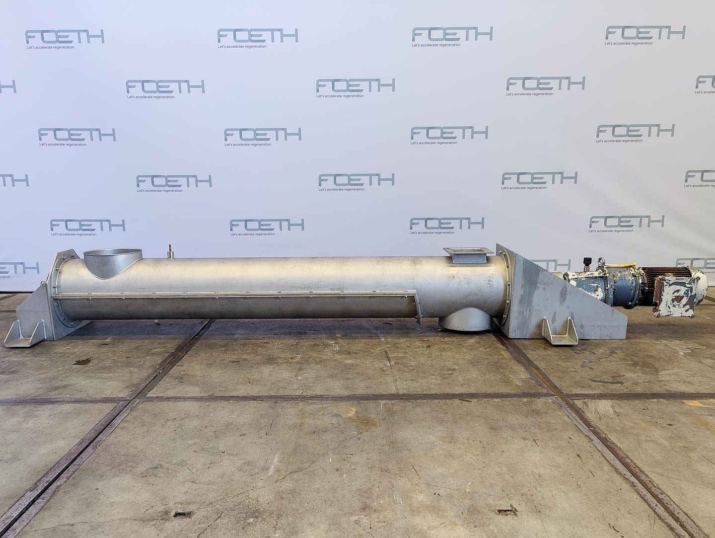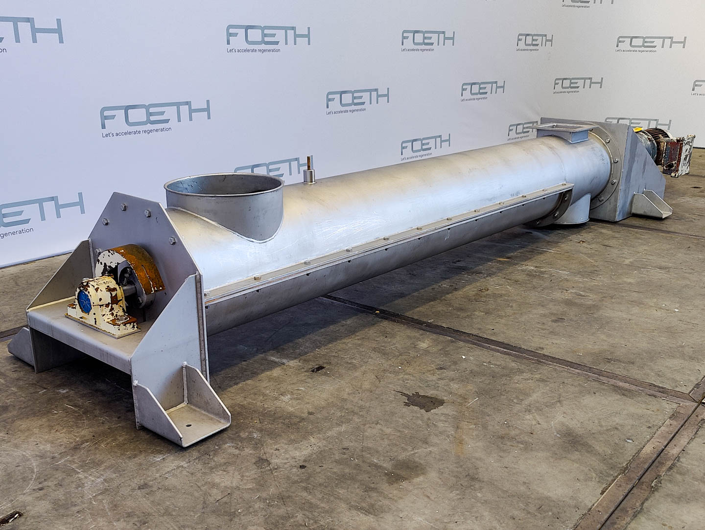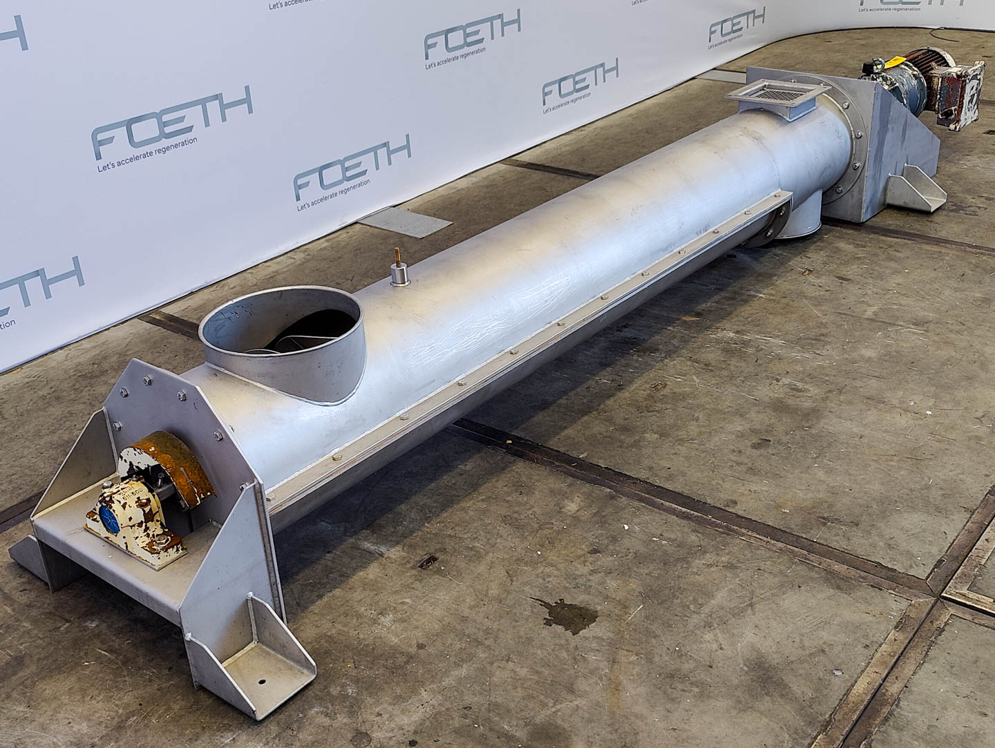 General SKU244U280 LocationBarneveld Main Features Motor1.5 KW Length2340 mm Inlet diameter100 mm Specified Features - Horizontal screw conveyor MaterialStainless steel 1.4552 Horizontal conveyor screwcheck Trough-typecheck Diameter90 mm Length2340 mm Between inlet and outlet2000 mm Shaft diameter60 mm Pitch97 mm Inletdia. 100 mm Outletdia. 125 mm Insulatedcheck Motor1,5 kW 220-240/380-415 Volt Screw speed20-100 rpm Height between in- and outlet500 mm With coverscheck Information Makeunknown: missing type plate Floorspace3,5x0,4 m Total height0,45 m Weight300 kg Extra Specificationsthis conveyor screw served as an inlet for cryogenic grinding Horizontal screw conveyorsCatalysts & fillersFeed additivesPaper & otherSolventsDetergent & surf.Other pharmaceuticsCosmeticsOrganicsE-waste & metalFood additivesSugarLubricants & oleoDairyAnimal feedOther feedConfection ...