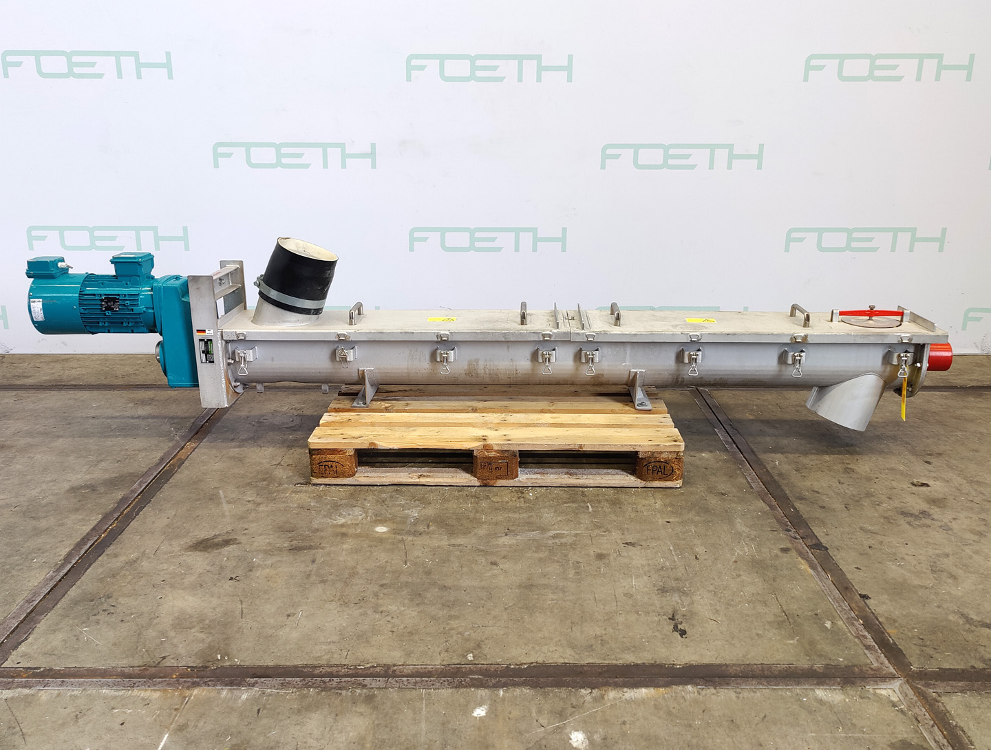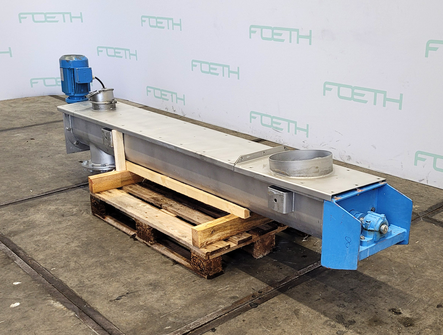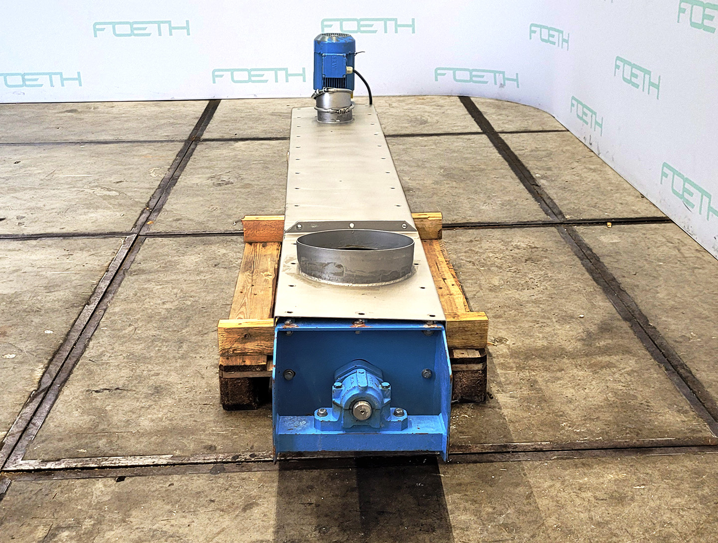 General SKU204U049 MakeAzo TypeTFS 140x3350LG Mach.No.446631 Year of construction2003 Main Features Motor1.5 KW Length3330 mm Inlet diameter115 mm Specified Features - Horizontal screw conveyor MaterialStainless steel 1.4301 (304) Horizontal conveyor screwcheck Trough-typecheck Diameter150 mm Length4000 mm Between inlet and outlet2600 mm Shaft diameter50 mm Pitch110 mm Inlet115 mm Outlet150 mm Motor1,5 kW Screw speed120 rpm Outlet height823 - 1760 mm With coverscheck Information LocationBarneveld Mounted inclined in framecheck Mounted on wheelscheck Floorspace4,3 x 0,8 m Total height2.6 m Weight420 kg CEcheckHorizontal screw conveyorsCatalysts & fillersFeed additivesPaper & otherSolventsDetergent & surf.Other pharmaceuticsCosmeticsOrganicsE-waste & metalFood additivesSugarLubricants & oleoDairyAnimal feedOther feedConfectionerySolid pharmaceuticsBeverages ...