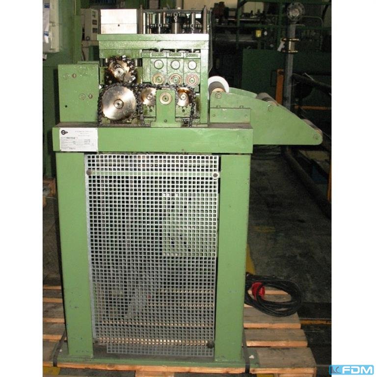 material width:450 mm material thickness:0,5 - 1,0 mm no. of straightening rolls:6 straightening roll diameter:53 mm number of draw-in rolls:2 diameter of draw-in rolls:96 mm power requirement:1,0 kW weight:0,65 t dimensions (WxDxH):1,0 x 1,0 x 1,55 m