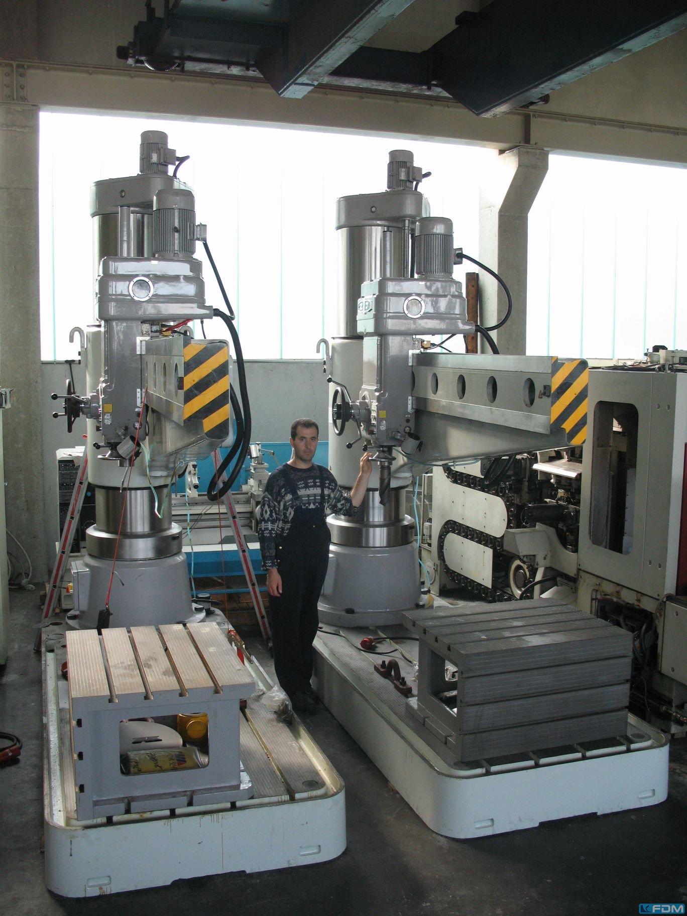 Equipped with: Otto Müller, M12, fast radial drilling machine, connection: 380 V – 50 Hz, mechanically switched speed, radially adjustable arm, vertical arm adjustment along column, spindle with hand feed, solid cast iron work table with T-slots, drill spindle holder (Morse): 30mm, longitudinal travel drill chuck (X-axis): 750 mm, height travel arm (Y-axis): 350 mm, spindle diameter: 55 mm, max drilling depth: 125 mm, speed: 2400 rpm, dimensions: 175x130x215cm (LxWxH), Power supply: 380V Auction-ID: A1-41991-41