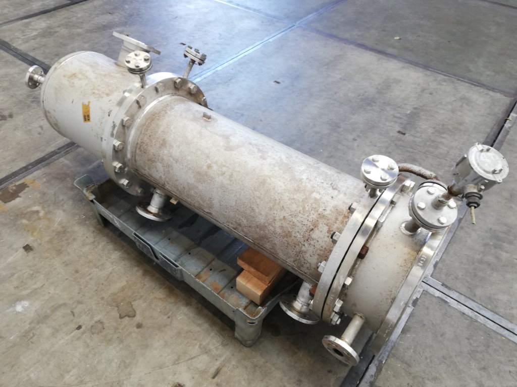 General SKUR0365 MakeBuss SMS LocationBarneveld TypeRieselfilm Gaskuhler Pressure Working pressure shell4 Bar Working pressure tubes0.5 Bar Tubular vacuum possiblecheck Main Features Shell (Material)Stainless steel Tube (Material)Stainless steel Surface3.15 m2 Specified Features - Shell and tube heat exchanger MaterialStainless steel 1.4541 (321) Heat exchangercheck Verticalcheck Heating surface3,15 M2 Number of tubes:25 Tube diameter44.5mm Tube length1000mm Wall thickness tubes2mm Max. temperature200 degr. C Shell diameter400mm Shell length1000mm Information No.22.11.6351/3 Year of construction1994 Floorspace2,0x0,8 M Total height0,8 M Weight500 KgSpicesPlastic & polymersShell and tube heat exchangersCatalysts & fillersFeed additivesPaper & otherSolventsDetergent & surf.Other pharmaceuticsCosmeticsOrganicsE-waste & metalFood additivesSugarLubricants & oleo ...