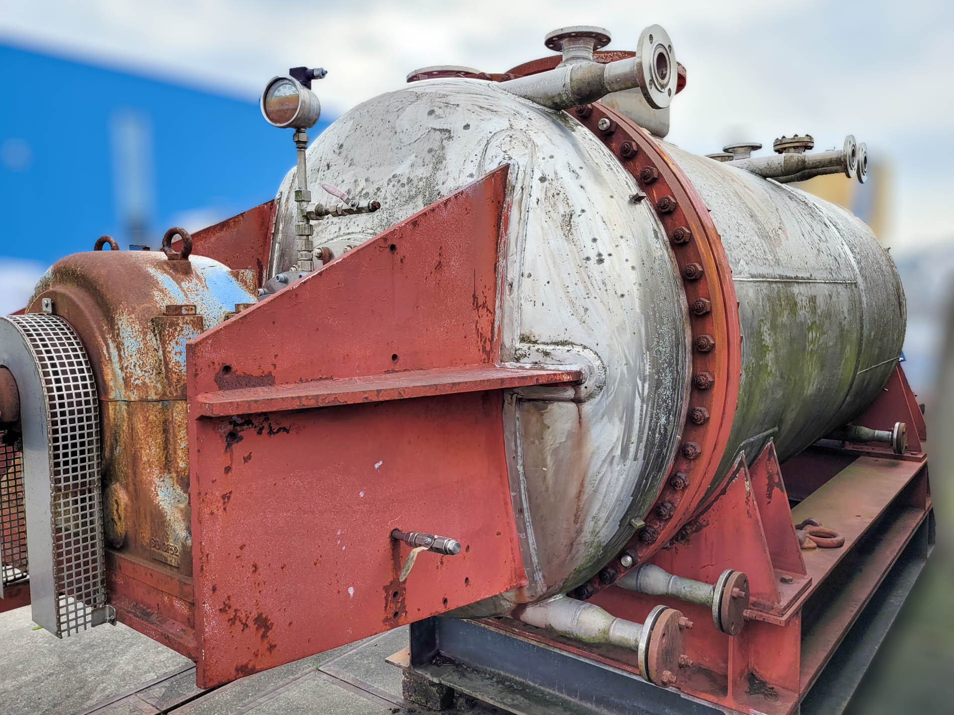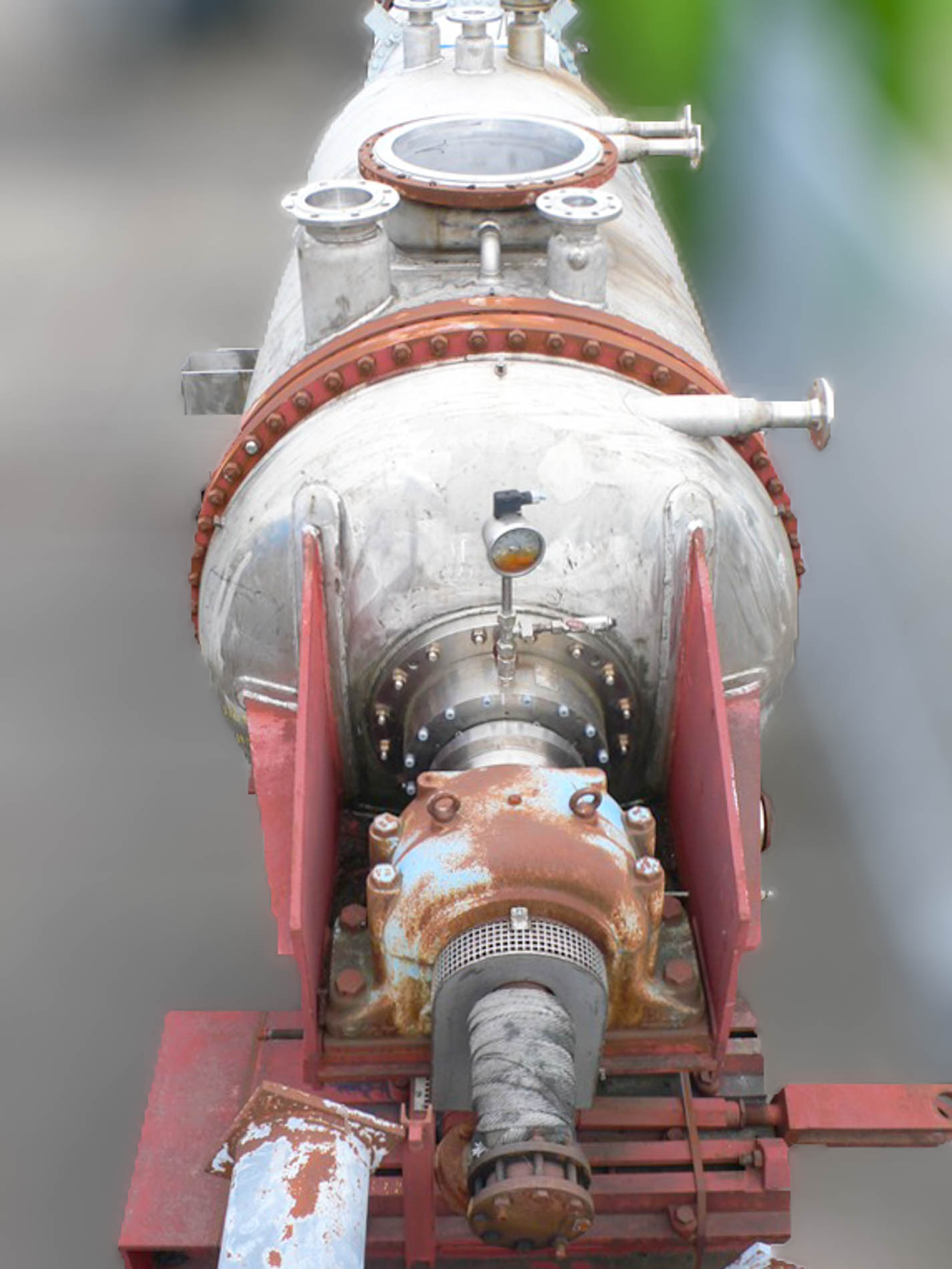General SKU116S444 MakeHaagen & Rinau TypeHRT-4000 No.8894086, Vessel 44852/1 Year of construction1990 Mounted on framecheck Pressure Working pressure6 Bar Vacuum possiblecheck Working pressure jacket6 Bar Main Features MaterialStainless steel Volume4660 Ltr. Motor55 KW Specified Features - Paddle dryer Paddle dryer(1x) Capacity4660 Ltr. Trough sizesdia. 1450x3350 mm Manholedia. 500 mm With jacket(300 Ltr.) Shaft can be heated(420 Ltr.) Max. temperature250 °C With mechanical sealcheck Motor55 kW, 167-500 Volt Speed mixing shaft1,89-5,68 rpm MaterialStainless steel 1.4571 (316Ti) Information LocationBarneveld Floorspace6,5x1,8 m Total height2,7 m Weight± 16.500 kg (incl. drive unit)Fine chemicalsStarchOther chemicalBiotechnologyAgrochemicalsCatalysts & fillersFeed additivesDiscountOther pharmaceuticsCosmeticsSugarAnimal feedOther feedConfectioneryPaddle d ...