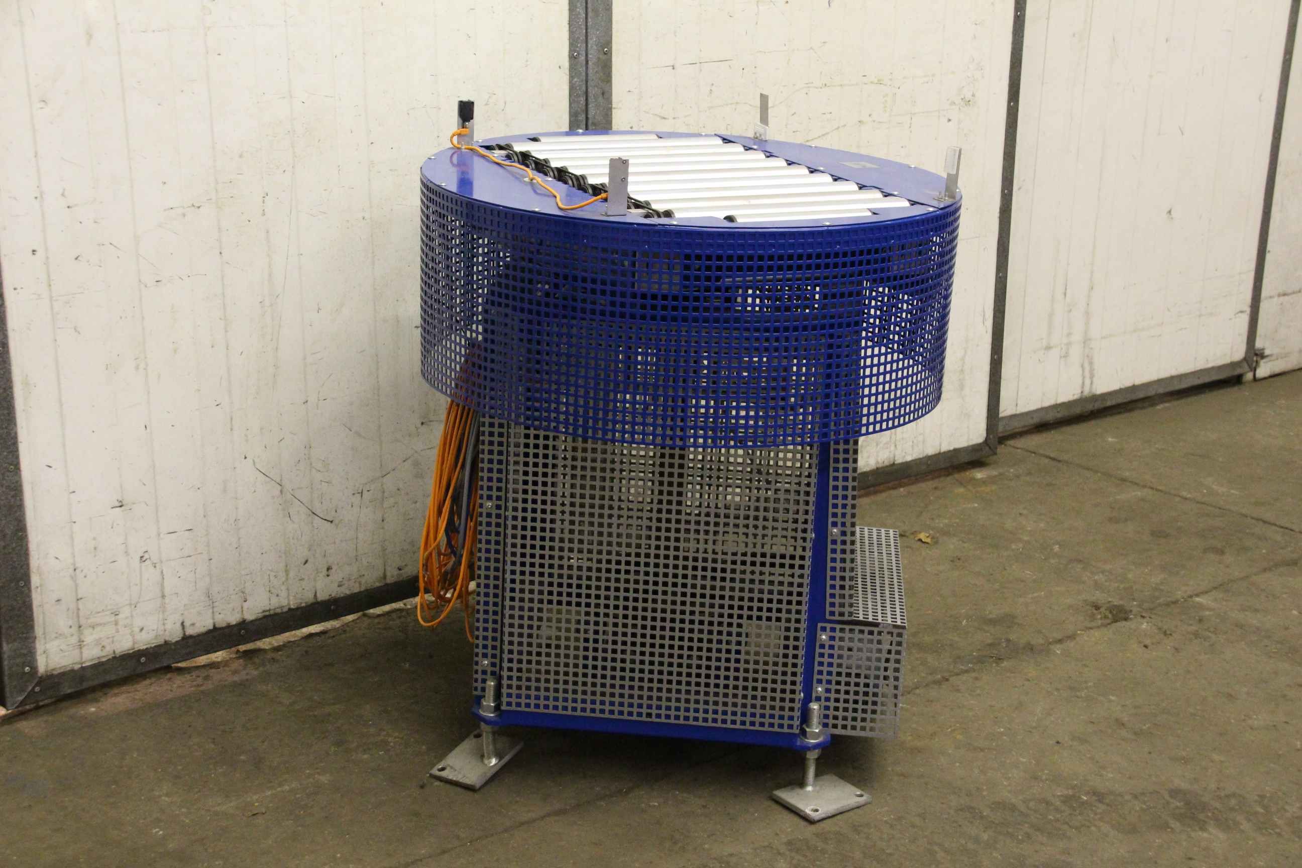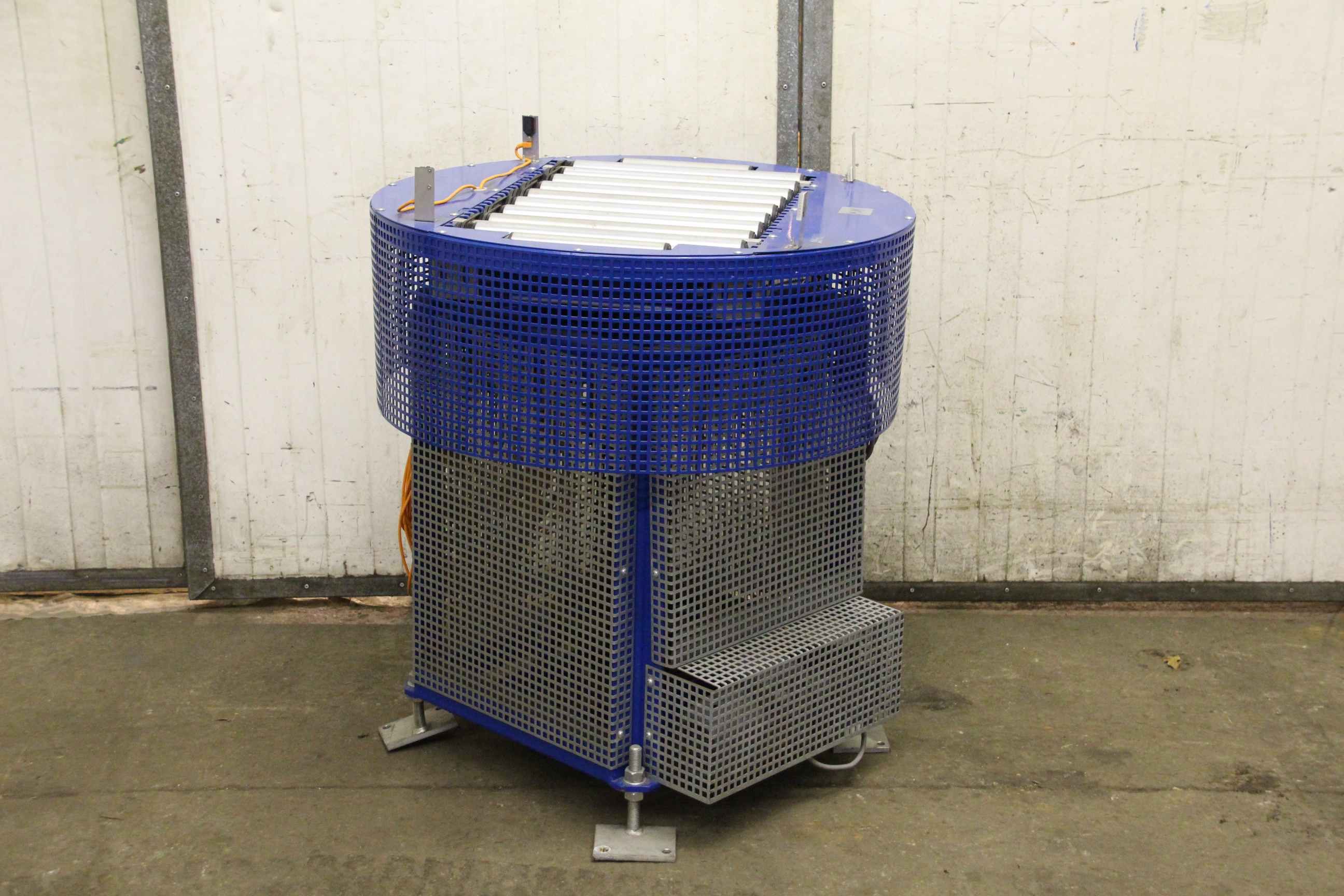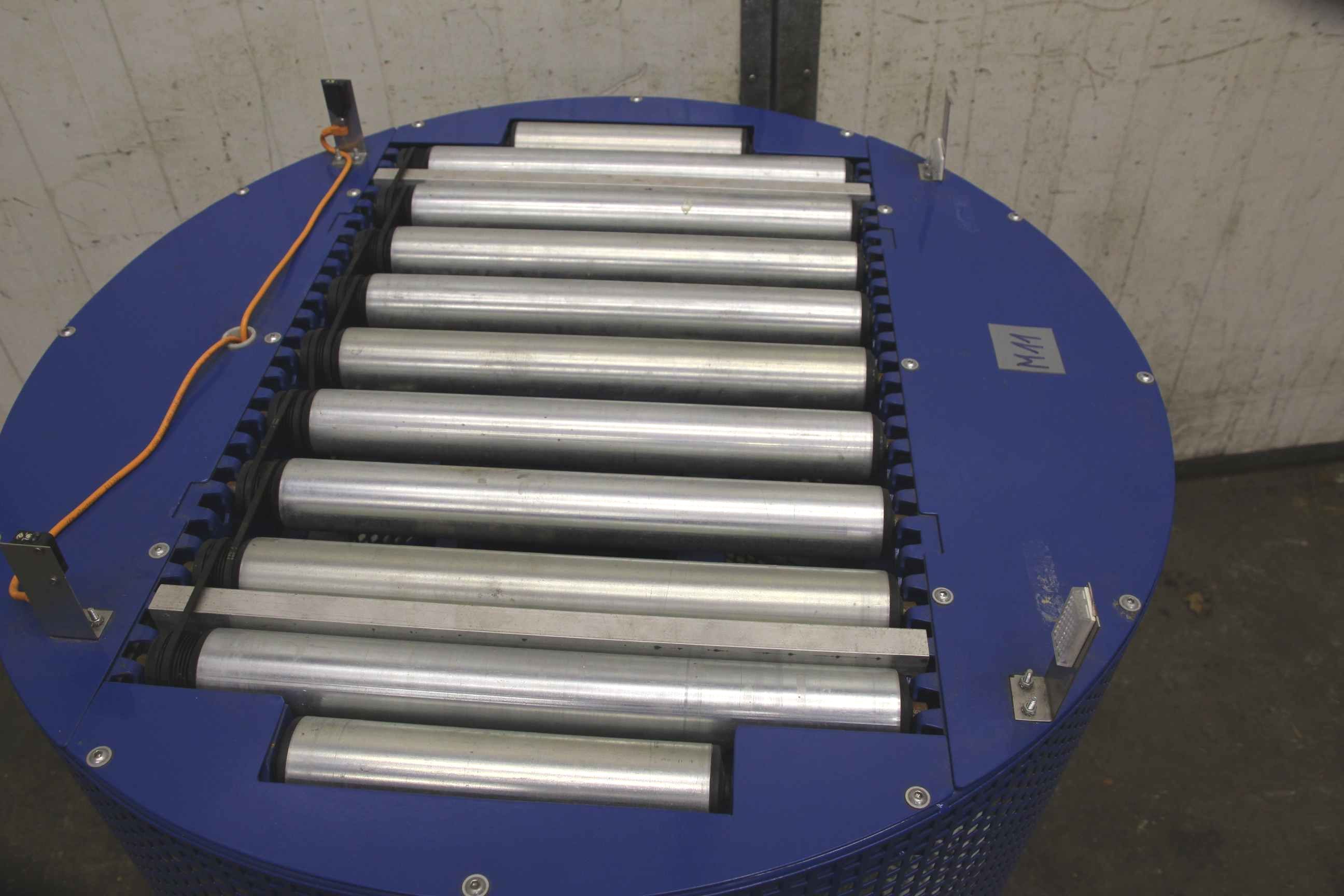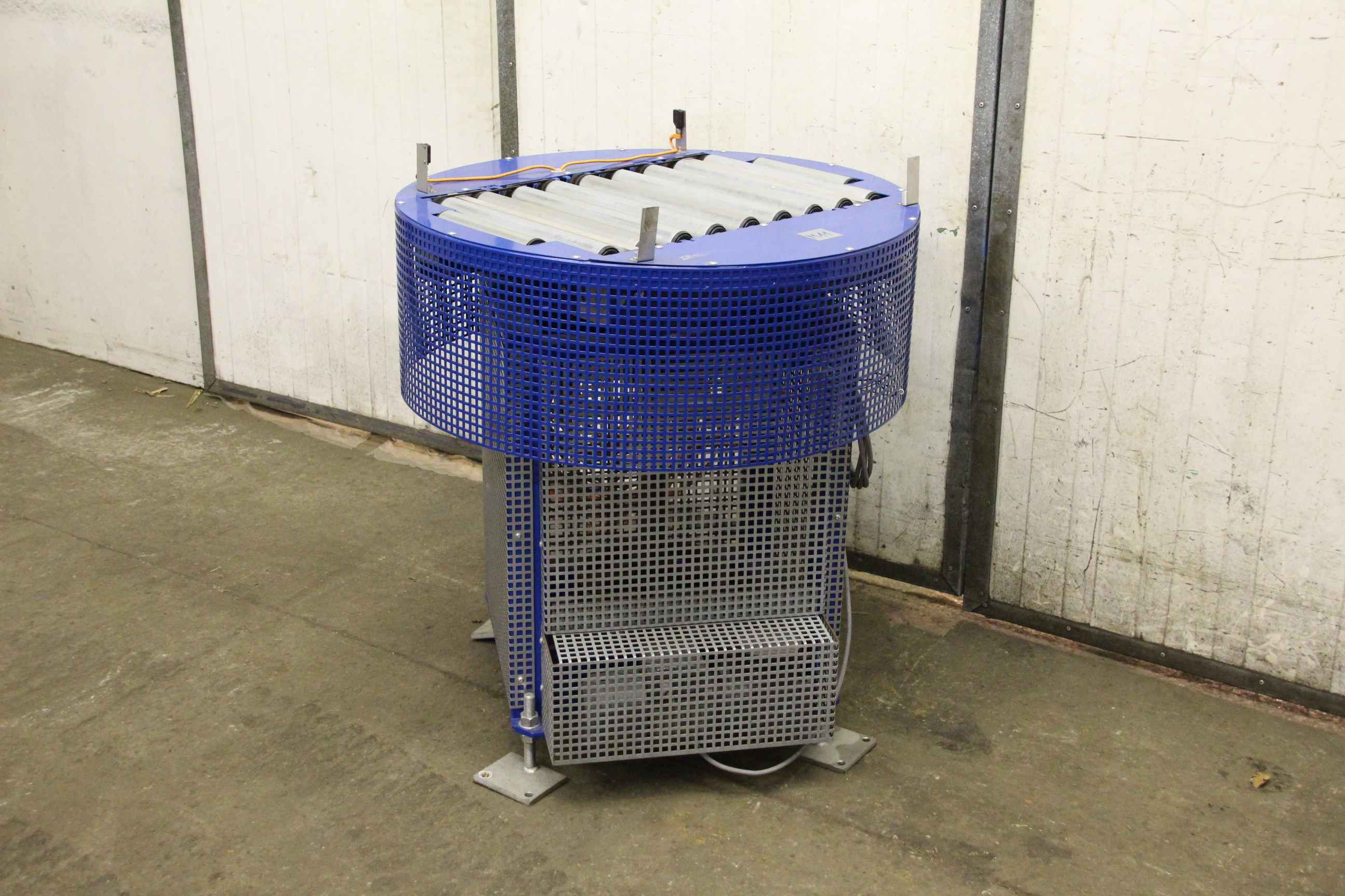 Roller conveyor, conveyor belt, roller conveyor belt, roller conveyor, turning station, turning unit -Roll width: 410 mm -Diameter roller: 50 mm -Roll speed: 21 m/min -Drive for: slewing ring SEW-Eurodrive 0.18 kW with brake -Dimensions: Ø 870/1035 mm -Weight: 162 kg