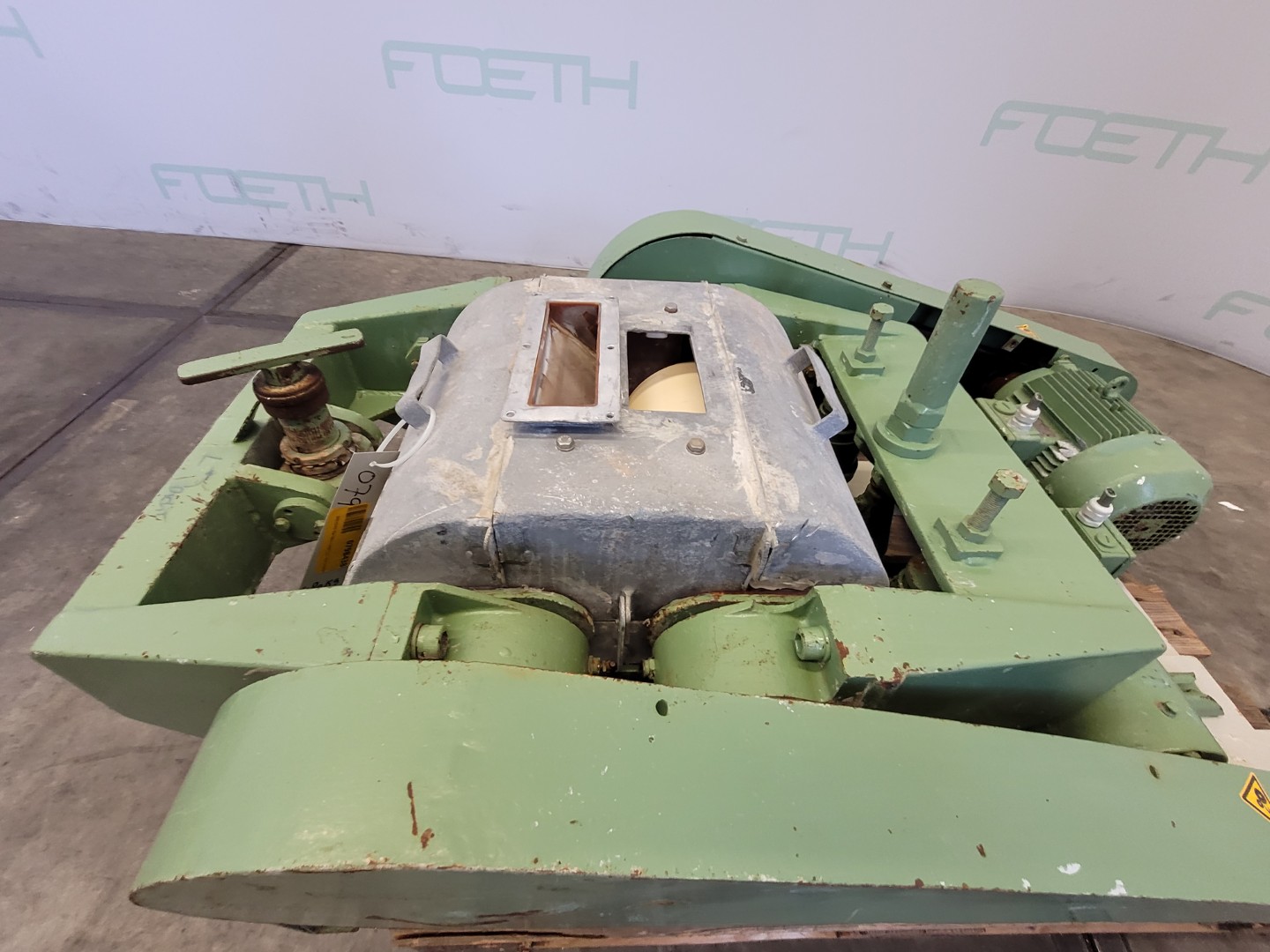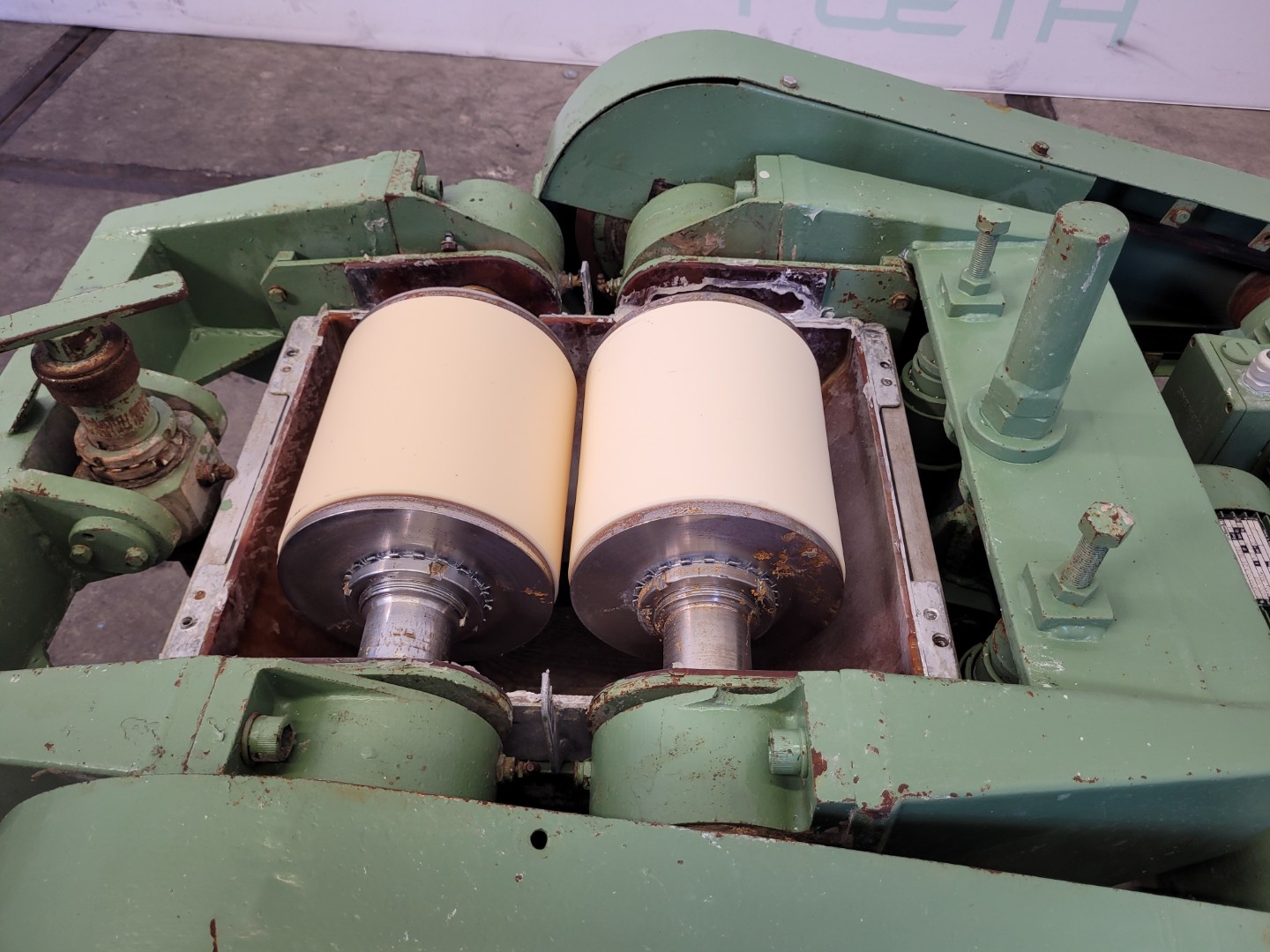 General SKU079B438 MakeKarl Merz Maschinenfabrik Waldshut TypeLWBP 2/2 No.2407 Year of construction1983 Mounted on framecheck Main Features Motor1.5 KW Inlet diameter200 mm Width200 mm Specified Features - Roll breaker MaterialCeramic Roll breakercheck Roller mill Double shaftcheck Roll sizesø200 x 200mm Smooth rollscheck Inlet55 x 185 mm Outlet100 x 185 mm Motor1,5 KW + 0,75 kW (400 V) Roll speed55 rpm Information LocationBarneveld Floorspace1,5 x 0,8 m Total height0,6 m Weight480 kg Extra Specifications- ceramic rollers Tea, herbs & coffeeFine chemicalsStarchOther chemicalRoll breakersRubberSpicesPlastic & polymersCatalysts & fillersFeed additivesPaper & otherDetergent & surf.CosmeticsOrganicsFood additivesSugarAnimal feedOther feedConfectioneryBeveragesDyes & pigmentsAPIPlastic & rubberMinerals & inorganicPowdered foodsPaints & coatingsConsumer wasteOils & ...