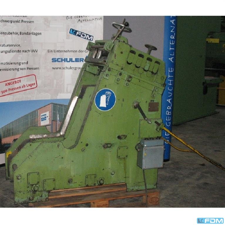 Inv. Num. : 7920 Type: UPW 12,5 Producer: VEB Wema Bad Düben DDR Created: 1980-GO 1998 Parameters: Rolling force: 12.5 t Max. workpiece diameter: 70 mm Workpiece width: 200 mm Power consumption: 4 kW Length: 1125 mm Width: 1400 mm Height: 1150 mm Weight: 2100 kg Equipment: Thread Rollers Ring magazine for automatic operation Support ruler
