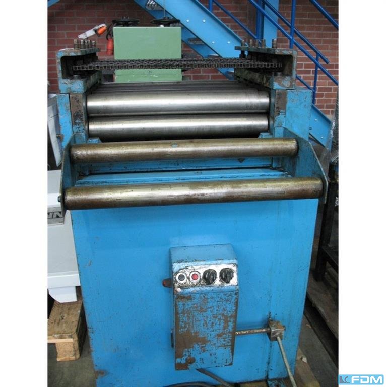 material width:450 mm material thickness:0,5 - 1,0 mm no. of straightening rolls:6 straightening roll diameter:53 mm number of draw-in rolls:2 diameter of draw-in rolls:96 mm power requirement:1,0 kW weight:0,65 t dimensions (WxDxH):1,0 x 1,0 x 1,55 m