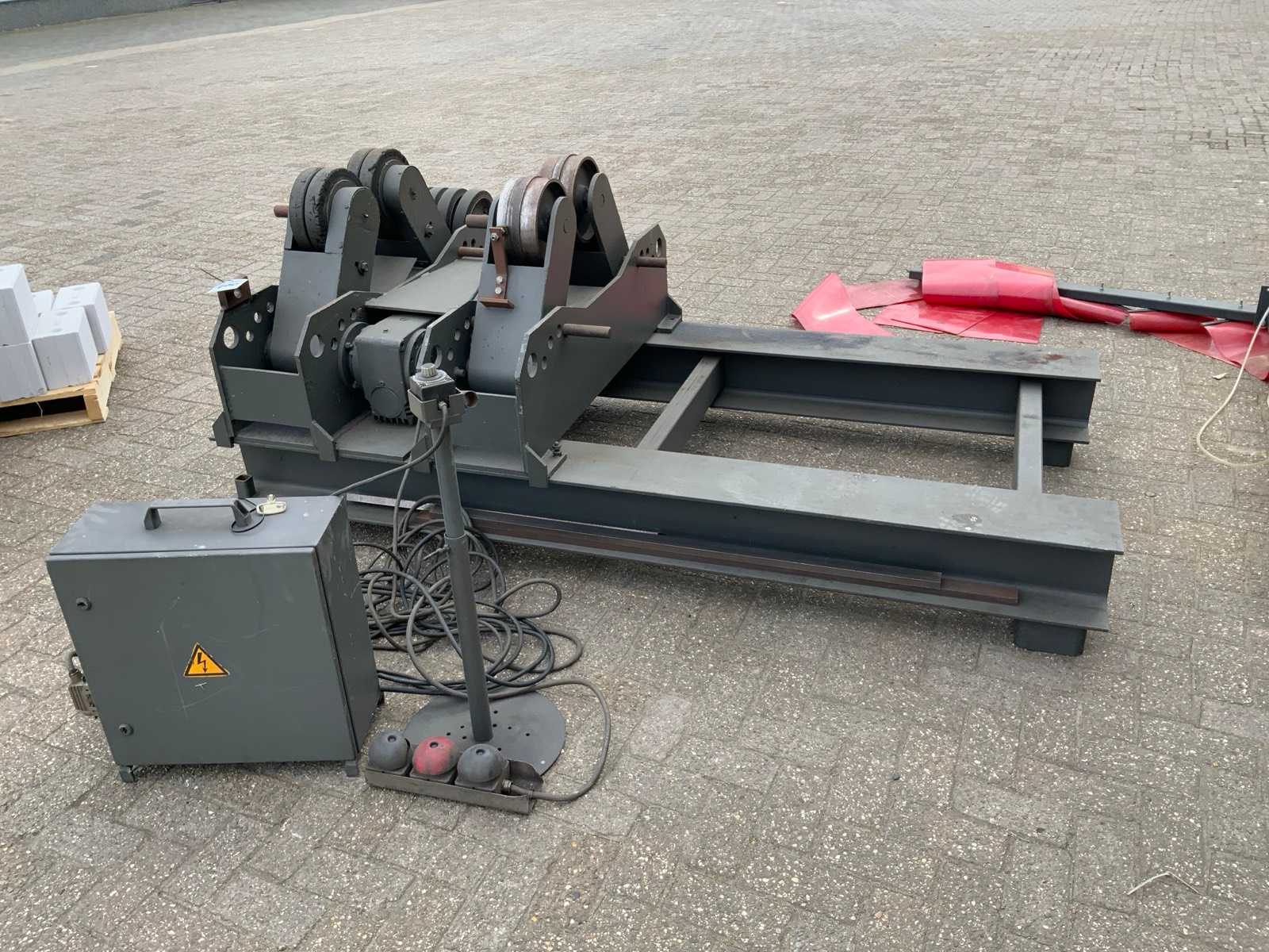 Welding Rotator for Flanges – Motorized and Idle Rollers General data: Machine type: Welding rotator Weight: approx. 2000 kg Technical details: Motorized rollers for controlled rotation Idle rollers for supporting and aligning workpieces Control system for adjusting rotation speed and direction Robust steel frame suitable for heavy loads Description: Professional welding rotator designed for handling and rotating heavy cylindrical workpieces such as pipes, tanks, and flanges. The system ensures stable positioning and smooth rotation during welding operations, improving precision, efficiency, and operator safety. Auction-ID: A7-45351-19