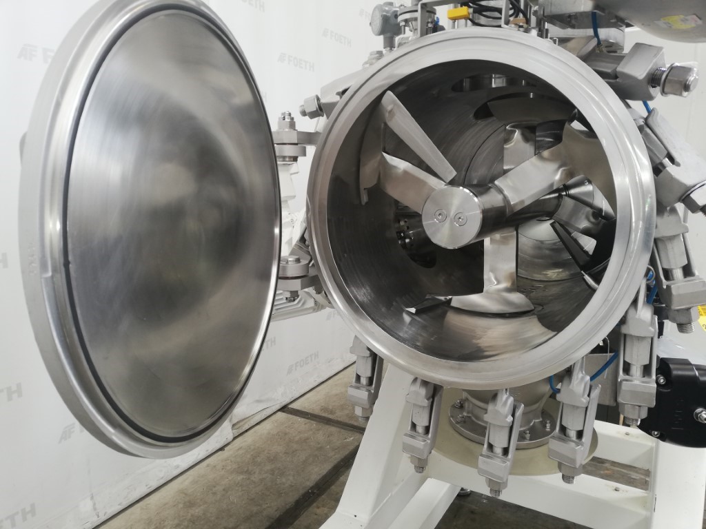 General SKU247S159 MakeLipp Mischtechnik GmbH (D) TypeIMR-E 2000 No.4920 Year of construction2011 Mounted on framecheck Pressure Working pressure10 Bar Vacuum possiblecheck Main Features MaterialStainless steel Volume2090 Ltr. Motor55 KW Specified Features - Powder turbo mixer MaterialStainless steel 1.4571 (316Ti) Powder turbo mixercheck Capacity2090 ltr. Trough sizesdia. 1100x2200mm InletDN200 Inspection hatchdoor dia. 1100mm OutletDN200 Max. temperature-40/120°C Motor55 kW400/690 Volt (Ex) Speed mixing shaft50 rpm With lump breaker(3x) Motor15 kW 400/690 Volt (Ex) (3x) Speed lumpbreaker965 rpm Information LocationBarneveld Floorspace2,5x4,7 M Total height2,3 M Weight7500 Kg CEcheck ATEX compatiblecheck Extra Specificationsshaft seals by means of a flushed seal (Eagle Burgmann) including filter and product dosing vessel with agitator Powder turbo mi ...