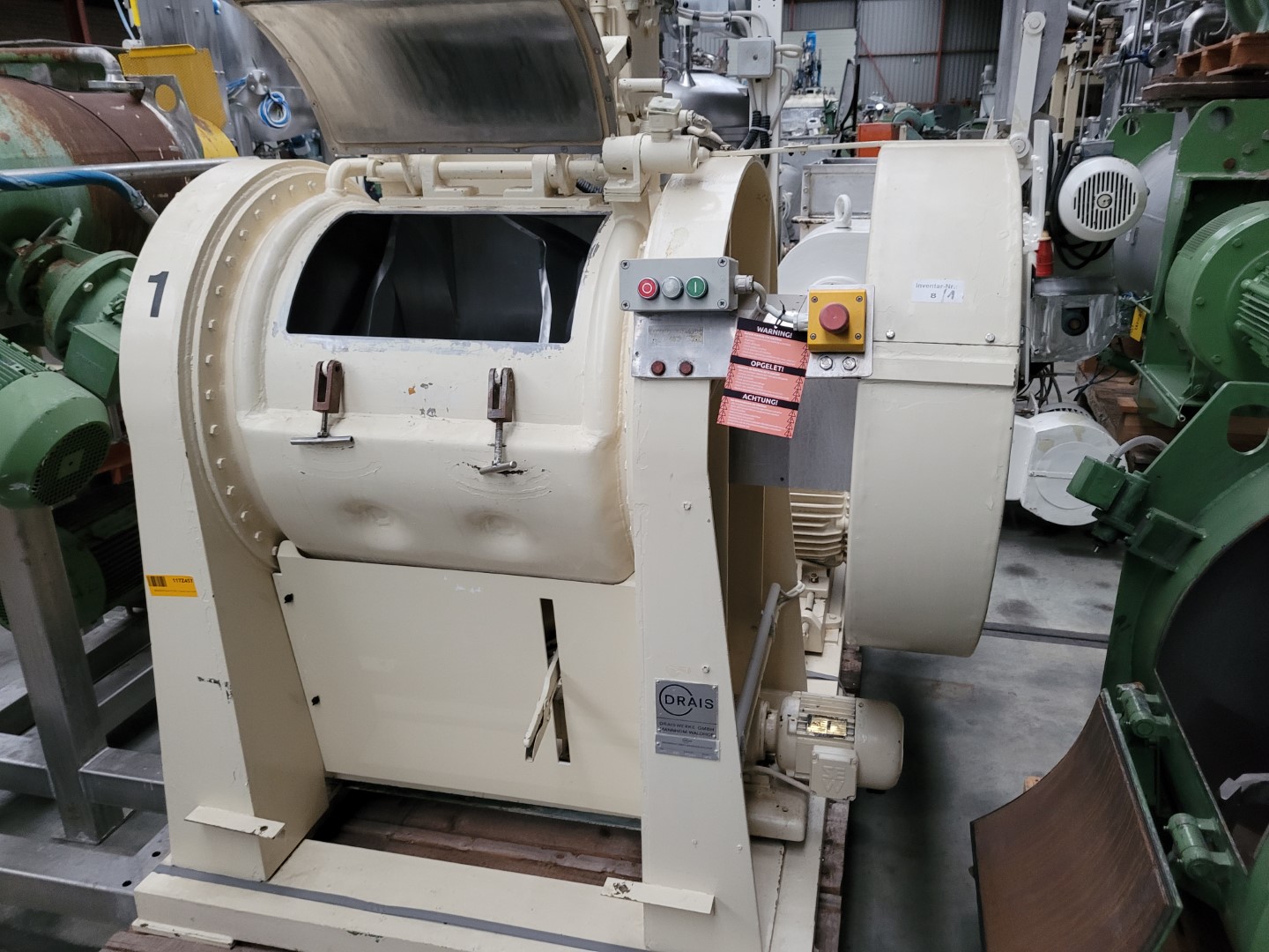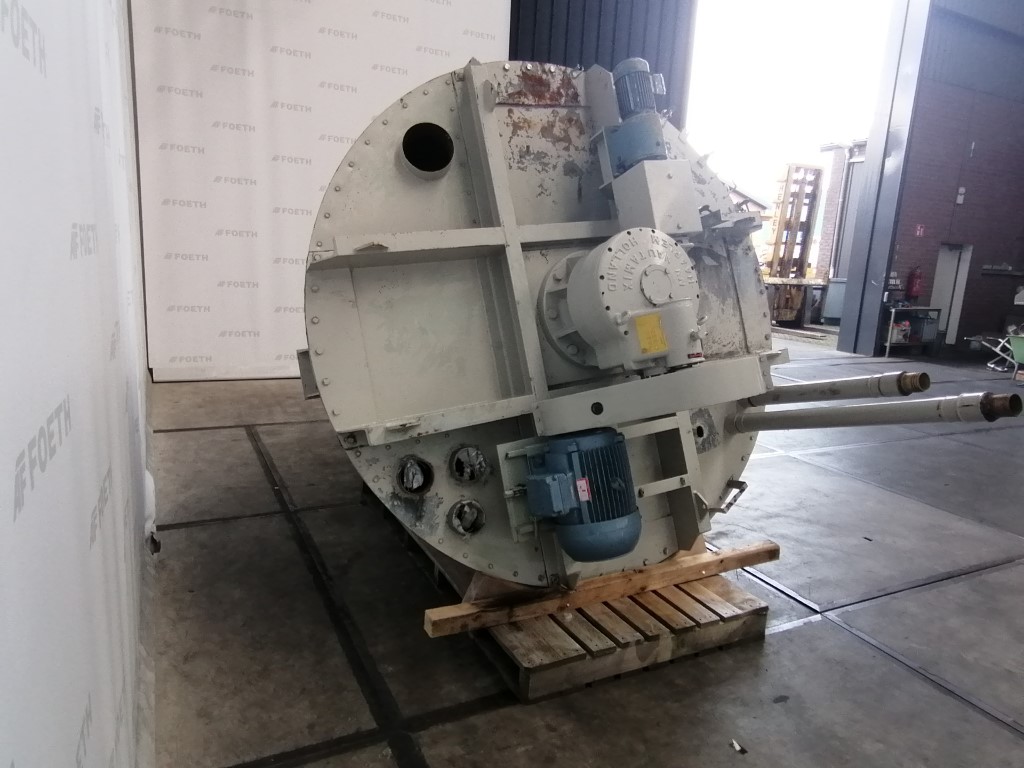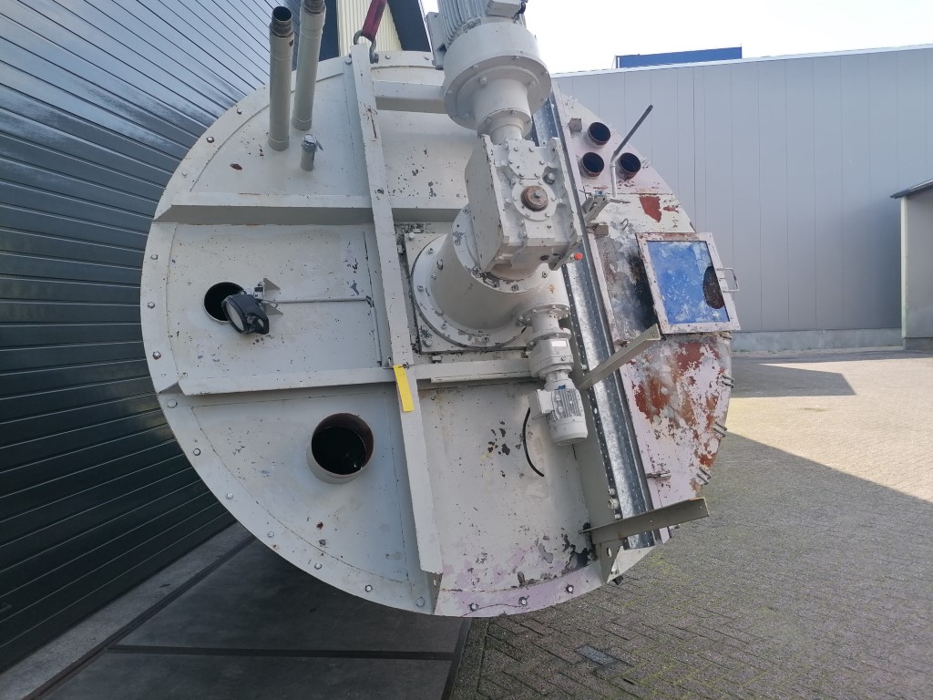 General SKUR0231 MakeDraiswerke GmbH Mannheim (D) TypeT-2000 SM LocationBarneveld Pressure Working pressure jacket6 Bar Main Features MaterialStainless steel Volume2000 Ltr. Motor24 KW Specified Features - Powder turbo mixer Powder turbo mixercheck Capacity2000 Ltr Trough sizesdia 1200x1950mm Inlet1090x900mm Top connectionsdia 80mm (1x) Inspection hatch550x400mm Outletdia. 300mm With jacket(150 ltr) Max. temperature165 degr. C With adjustable packing glandscheck Glands air purgedcheck Motor16 / 24 kW 380 Volt Ex MaterialStainless steel 1.4541 (321) Information No.51989 Year of construction1985 Floorspace4,4x1,6 M Total height1,5 M Weight5000 Kg Extra Specificationsincluding Bucher filter. filter housing material 1.4301 including 2 filter cartridges (20 filter bags 450x1100 mm) and transport trolley to disassemble the filter cartridges, filter housing size ...
