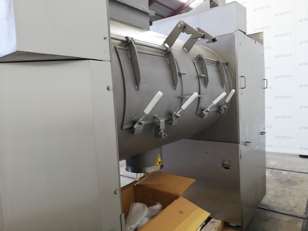 Manufacturer: Seydelmann Type: Grinders Mixer 2-speed working worm 1-speed mixing paddle motor, 1.5 kW with 2 mixing arms, independent of working worm Height: 1450 mm Width: 900 mm Length: 1250 mm Voltage: 400V 50Hz 3N Power: 20.0 kW 37 A Throat Diameter: 130 mm Main material: Stainlees Steel Machine weight: 680 kg
