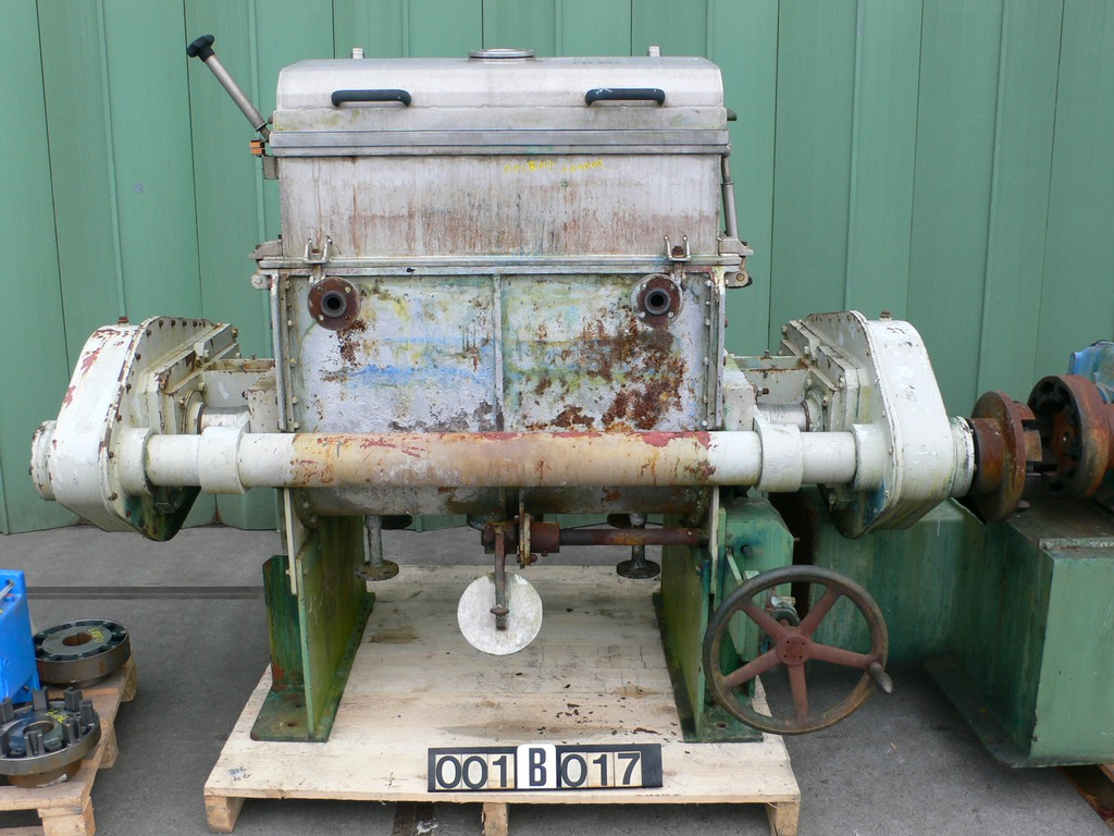 General SKU001B017 MakeHermann Linden GmbH Marienheide TypeK-IV 300 SP No.885 Year of construction1973 LocationBarneveld Main Features MaterialStainless steel Volume300 Ltr. Motor24 KW Specified Features - Z-blade mixer Z-blade mixer(1x) Capacity300 Ltr (useful) Trough sizes750x1000mm With covercheck With jacketcheck Double gearedcheck With adjustable packing glandscheck Motor16/24 KW, 500 Volt (Ex) Bottom outlet(2x dia. 200mm) MaterialStainless steel 1.4571 (316Ti) Information With switchcheck Floorspace3,6x1,6 M Total height1,5 M Weight2600 KG ATEX compatiblecheckZ-blade mixersCatalysts & fillersFeed additivesPaper & otherDiscountDetergent & surf.Other pharmaceuticsCosmeticsSugarLubricants & oleoAnimal feedOther feedSolid pharmaceuticsDyes & pigmentsMinerals & inorganicPlastic & polymersRubberOther chemicalStarchPowdered foodsPaints & coatingsOils & fatHerma ...
