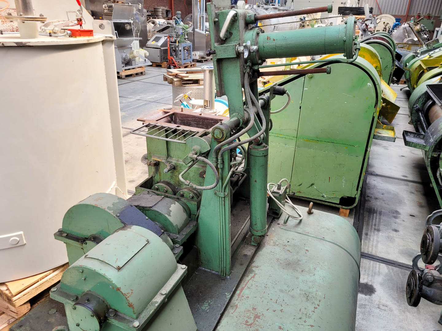 General SKU186K643 MakeWerner und Pfleiderer TypeLDUK 6 - IInS No.111045 Year of construction1962 Mounted on framecheck Pressure Working pressure10 Bar Main Features MaterialMild steel Volume18 Ltr. Motor7.5 KW Specified Features - Z-blade mixer Double screw cont. kneadercheck Jacketcheck With variable speed drivecheck Inlet30 x 195 mm Arm speed21,6-97,2/28,2-127 Rpm Arms can be cooled/heatedcheck Capacity18 l (usefull 8 l) Double shaft kneadercheck dispersion kneader Masticator-armscheck Single gearedcheck With adjustable packing glandscheck With covercheck With hydraulic tiltingcheck Motor7,5 kW (400 V) Z-blade mixers MaterialMild steel Information LocationBarneveld With switchcheck Floorspace1,8 x 1,4 m Total height2 m Weight2500 kg Extra SpecificationsPneumatic tilting. With top ram (pneumatic) Z-blade mixersCatalysts & fillersDiscountDetergent & ...