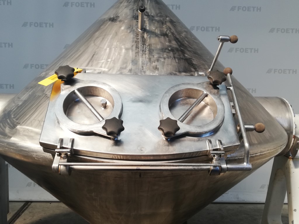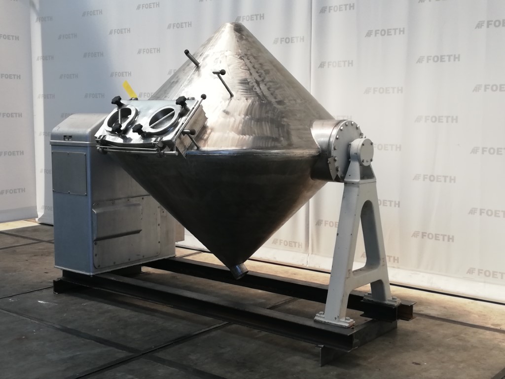 General SKUR0171 MakeEgli Butschwil (CH) LocationBarneveld TypeK.MI. Main Features MaterialStainless steel Volume2000 Ltr. Motor22 KW Specified Features - Tumbler mixer Double cone tumbler mixercheck Capacity2000 ltr Diameter1900mm Conical length950mm Inlet680x375mm Outletdia. 100mm With motor400/690 50 hz 22 kw 1470 rpm - 440/460 60 hz 25 kw 1765 rpm MaterialStainless steel 1.4401 (316) Information No.1-71 Year of construction1966 Floorspace3,1x2,2 M Total height2,7 M Weight2000 KgTumbler mixersSpicesTea, herbs & coffeeButschwilMixers > Tumbler mixersIndustries > Food & Feed > SpicesIndustries > Food & Feed > Tea, herbs & coffeeBrand > Butschwil What you can expect from Foeth: -- Machine is in working condition -- At a reduced price compared to new -- Ready for shipping to any destination worldwide -- You are welcome to inspect the machine in Barneveld, The Nethe ...
