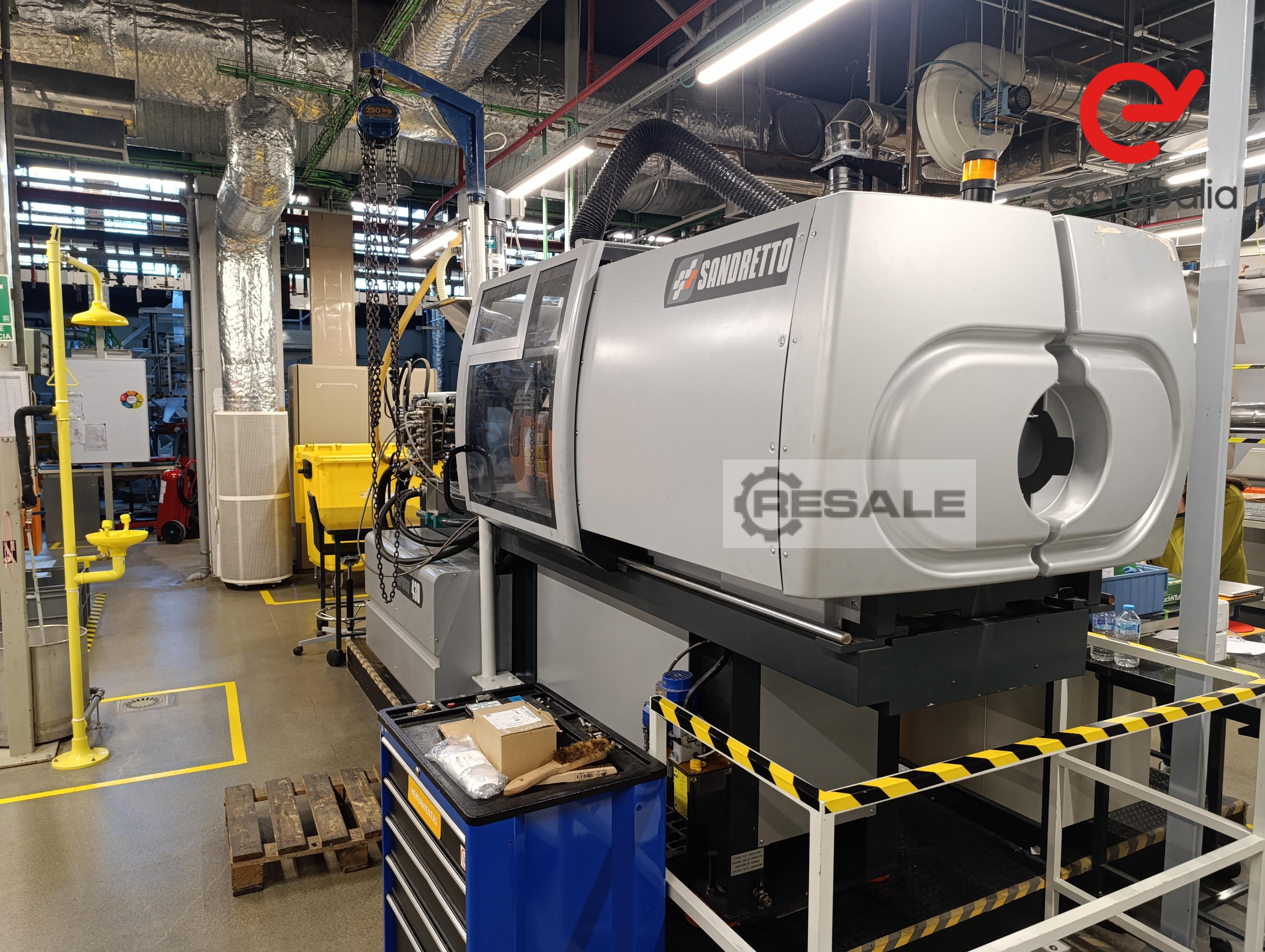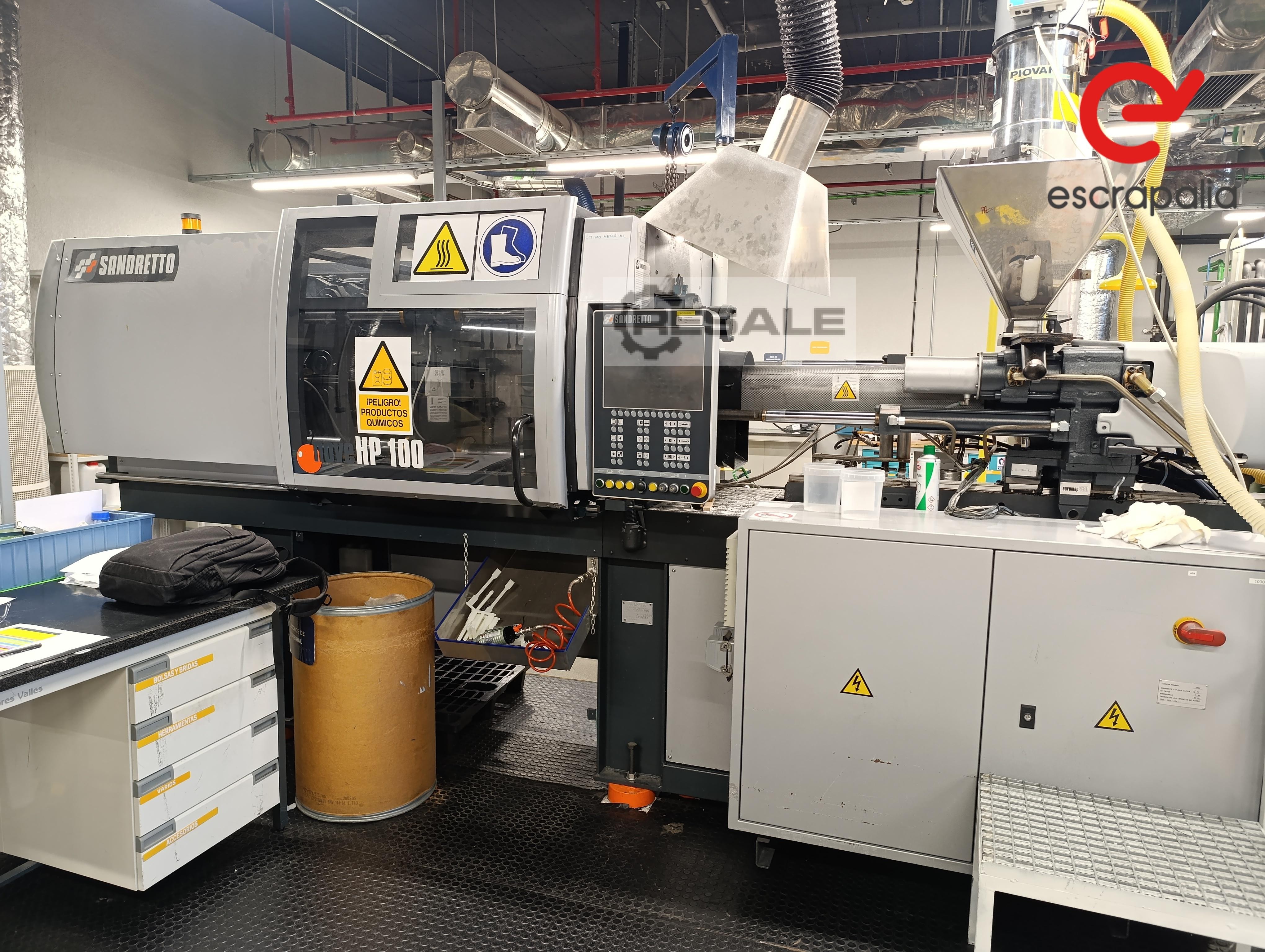 Sandretto Nove HP 100 Injection Moulding Machine + Chiller & Hoist Overview Excellent opportunity to acquire a complete plastic injection moulding cell. This lot features the reliable Sandretto Nove HP 100 industrial injection moulding machine, capable of processing a wide variety of polymers (PP, PE, ABS, PS, PA, PC). To provide a complete turnkey solution for your manufacturing floor, the sale also includes the original Sandretto Nove chiller (cooling unit) and a Sandretto Otto 150 hoist. Clamping Unit Specifications Clamping Force: ~100 Tons (≈ 980 kN) Tie-Bar Clearance: ~410 mm (16.14") Maximum Mould Opening: ~460 mm Minimum Mould Thickness: ~100 mm Clamping Type: Hydraulic 4-tie-bar system Injection Unit Specifications Screw Diameter: Variable (approx. 30–45 mm depending on version) L/D Ratio: ~18:1 to 22:1 Injection Pressure: Up to ~1500–2000 ...