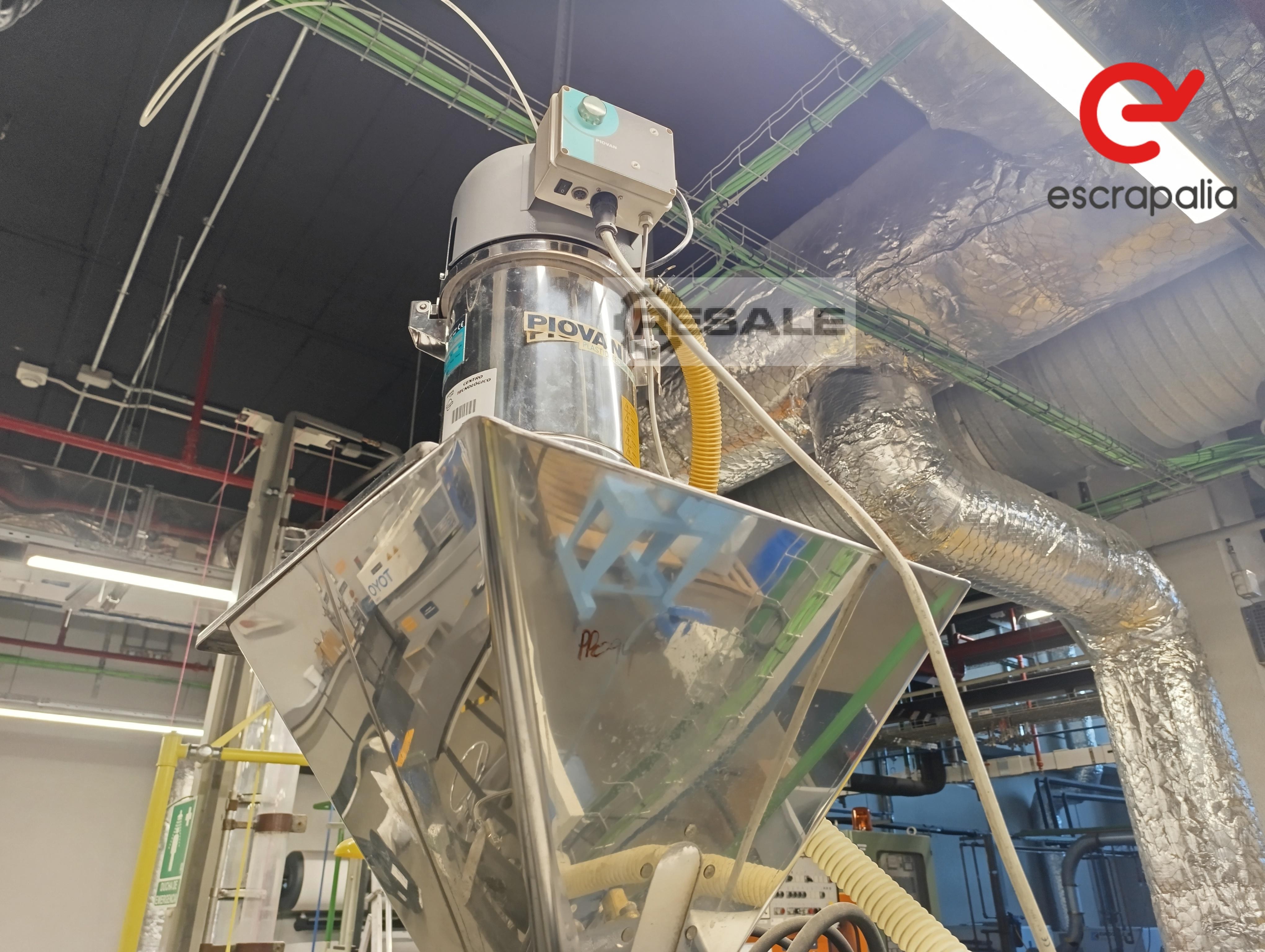 Extruder 2 corrotating spindles: 50 mm Ø, 40 L/D, brand: ICMA SAN Giorgio, with double degasser. Motor: 57.5 Kw direct current with drive. Material dispenser and thread head (spaghetti), with electrical panel.