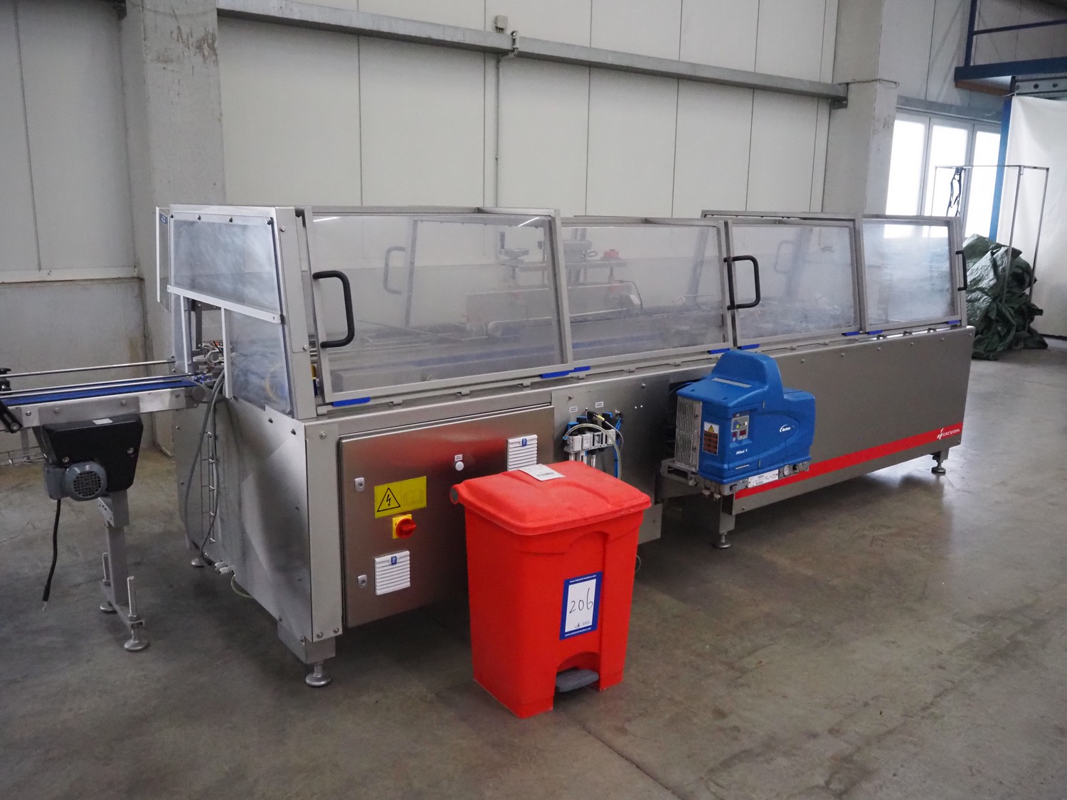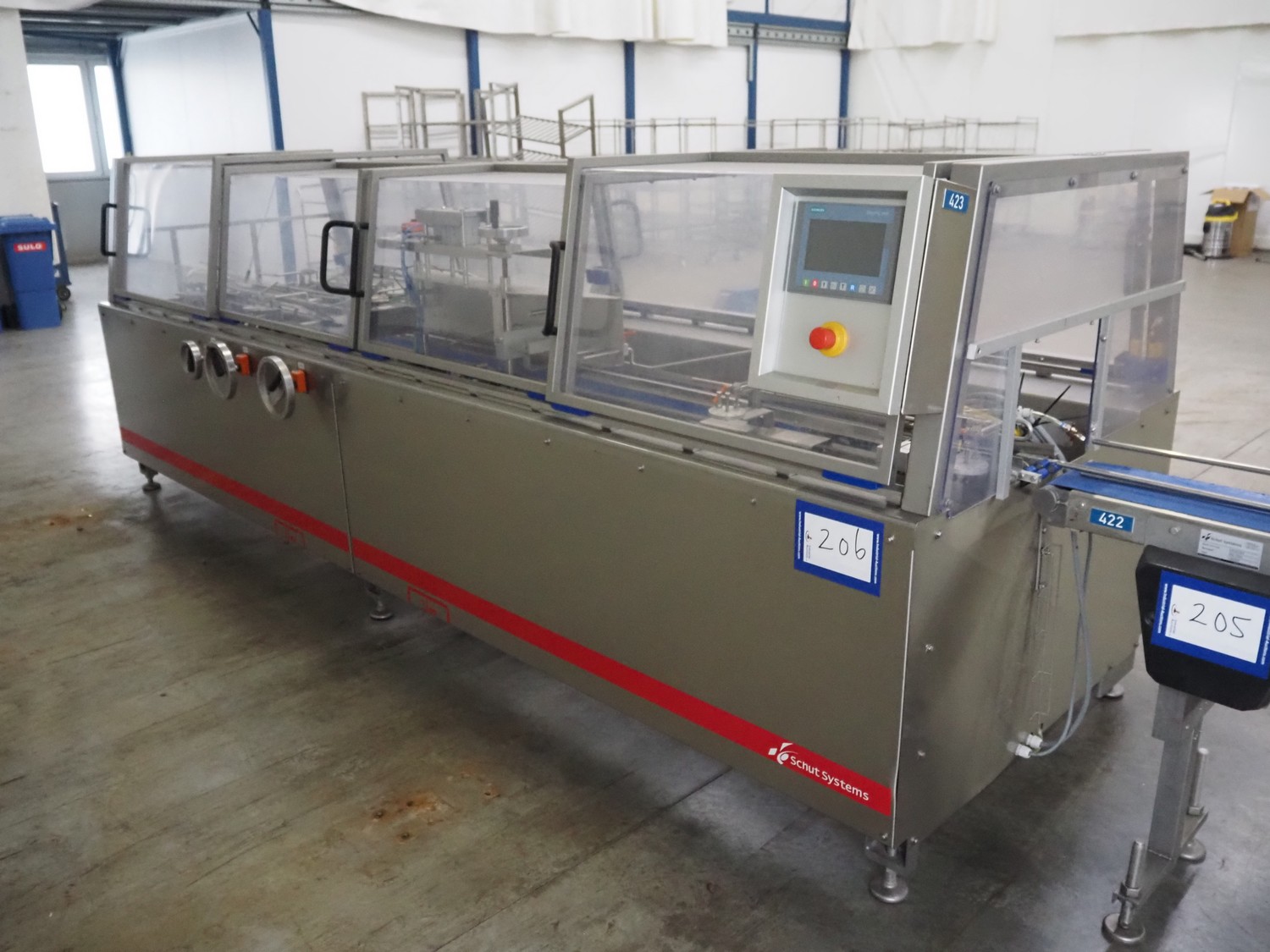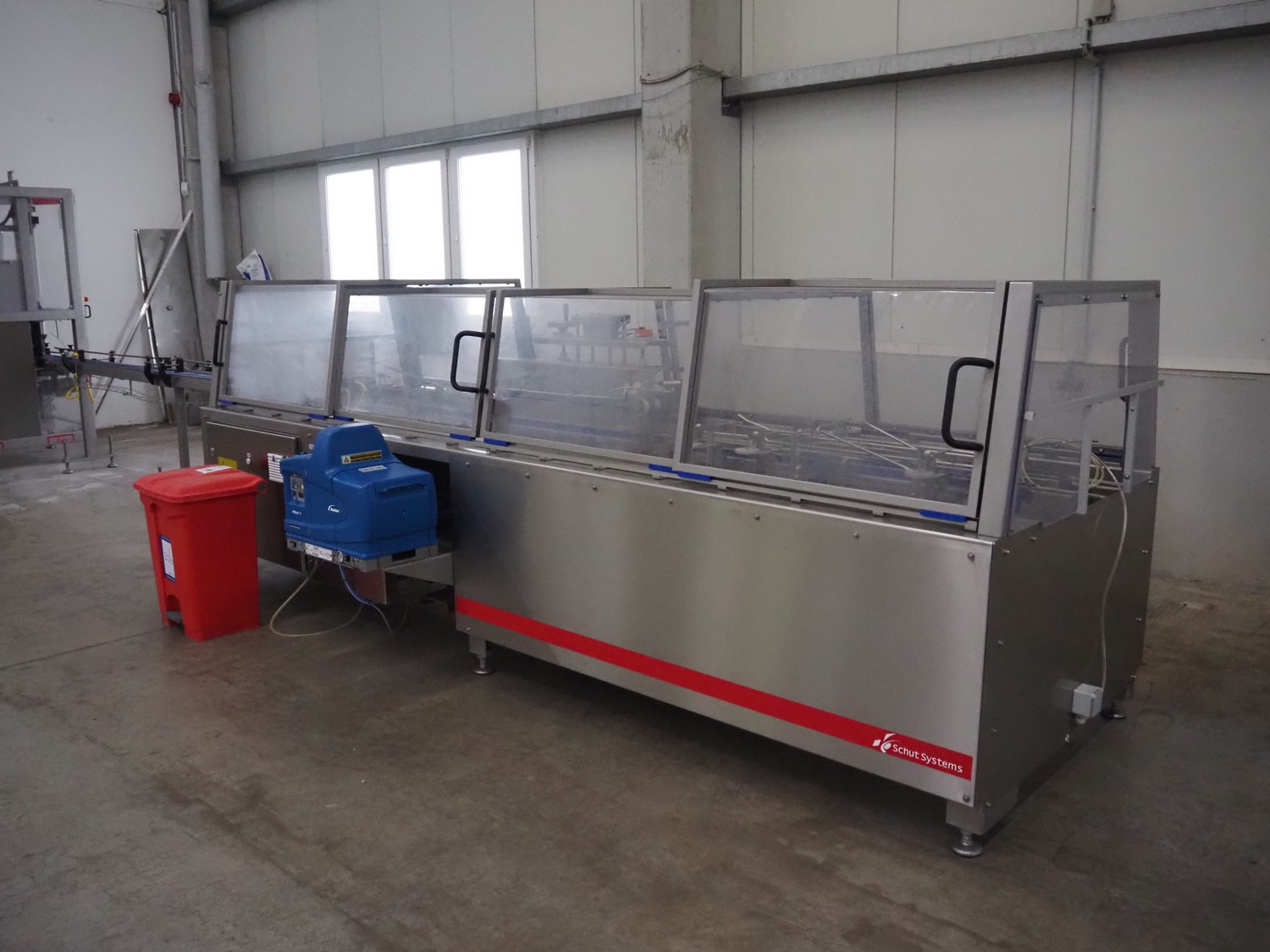 Schut carton closer, type: CM65, serial number: 572012, year of construction: 2020, 3x400 V, 50 Hz, 6.1 kW, 5-10 bar, capacity: maximum 60 cartons/minute, with Nordson ProBlue P4 glue unit, weight: 1100 kg, total dimensions carton closer: 4000 mm x 2000 mm x 1500 mm.