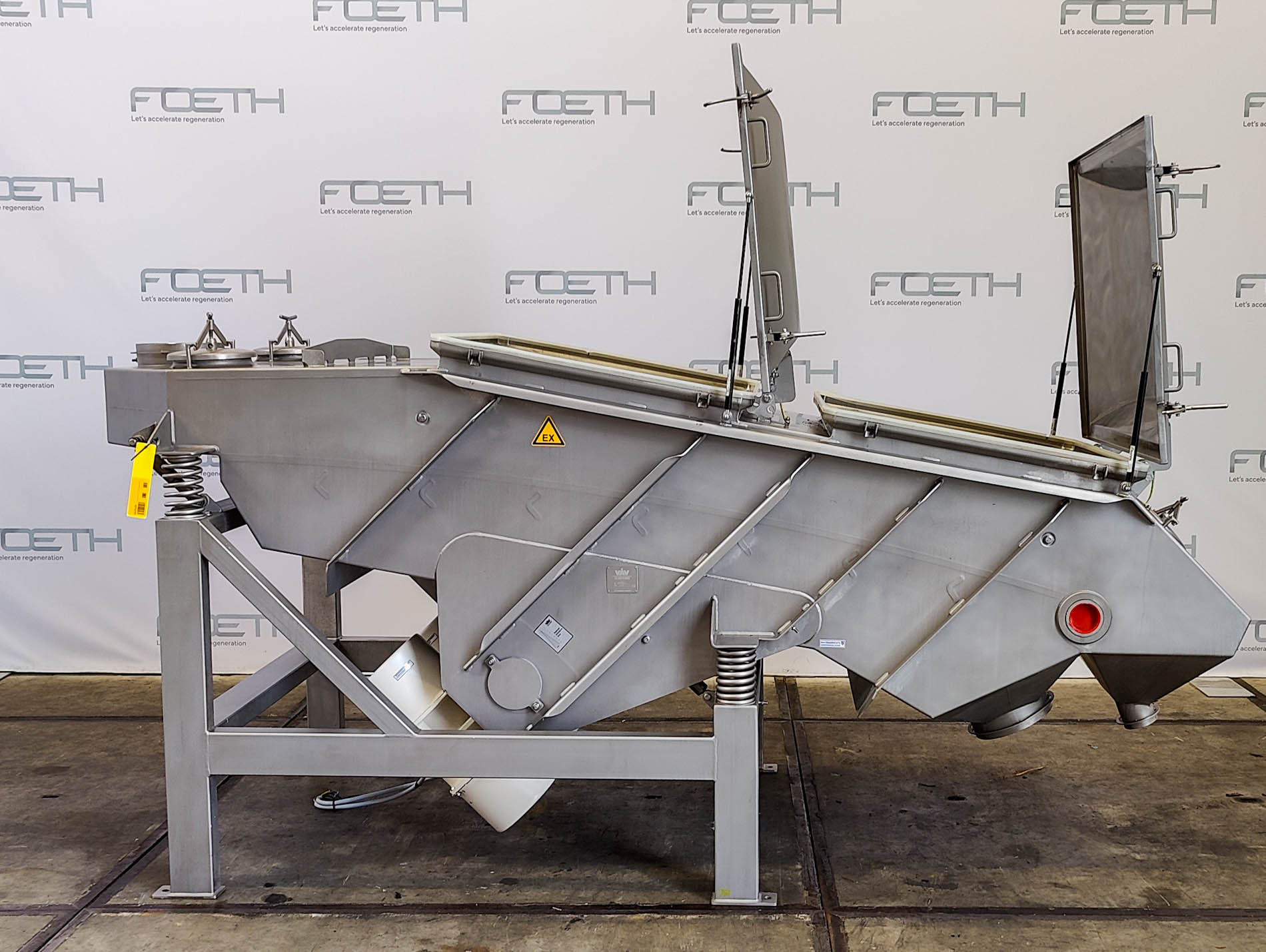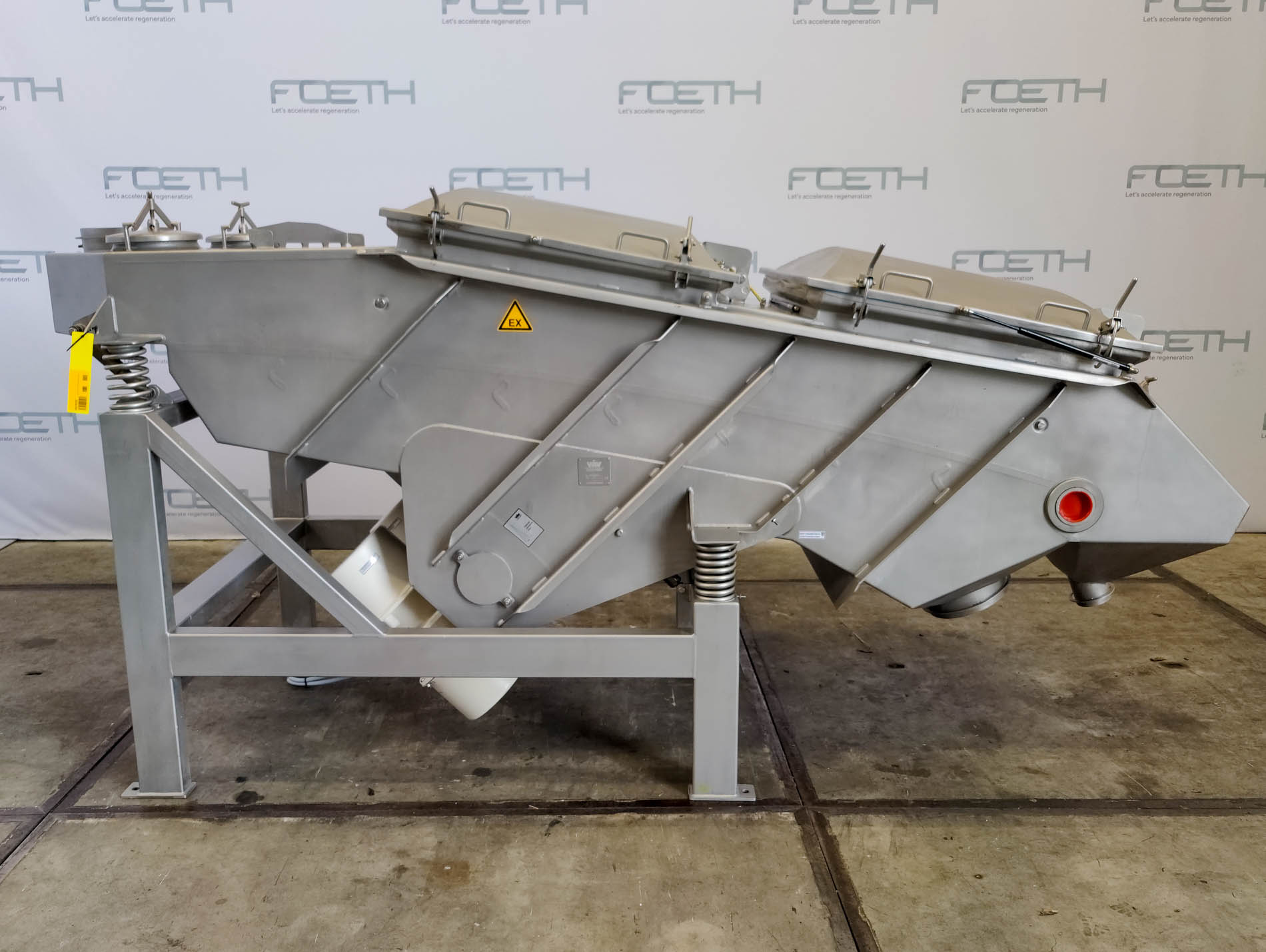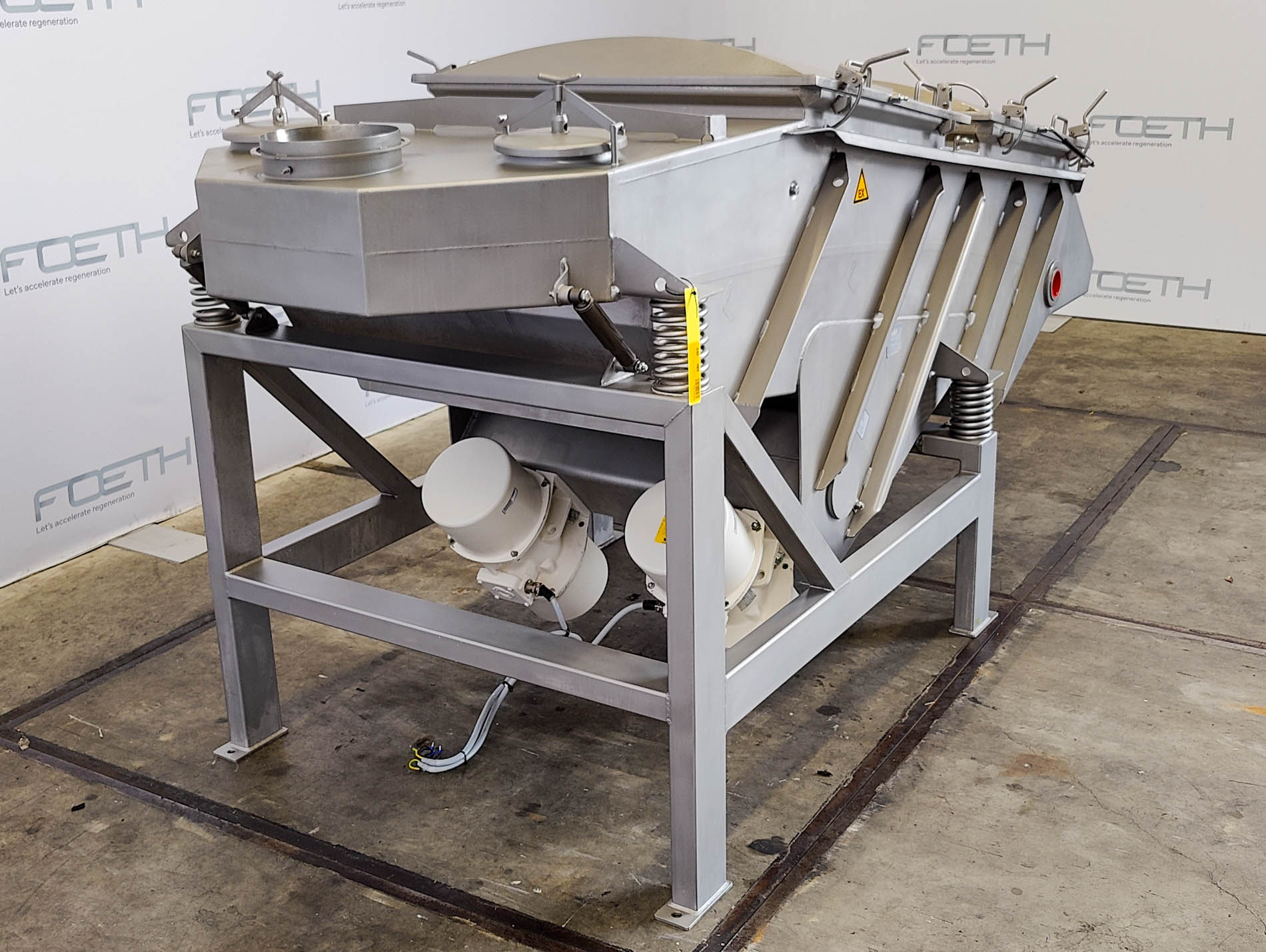 General SKU321U757 LocationBarneveld CEcheck MakeVAV Scan Vibro TypeSRS Main Features MaterialStainless steel Surface2.28 m2 Size length2400 mm Sizes width950 mm Specified Features - Vibro sieve Vibro sievecheck Sieve surface2,28 m2 Number of sieve decks:1 Sieve sizes2400x950 mm With covercheck InletDia: 254 mm OutletDia: 254mm and 100mm Drive vibro motor1,0 kW, 230/400 volt,980rpm. Type SCNO-340-6/N 340-6, (2x) Sieve perforation2,0x2,0 mm MaterialStainless steel 1.4305 (303) Information No.30832-1 Year of construction2000 Mounted on stainl. st. framecheck Floor space3,3x1,31 m Total height1,7 m Weight900kgFeed additivesPaper & otherOther pharmaceuticsOrganicsE-waste & metalSugarVibro sievesAnimal feedOther feedSolid pharmaceuticsPlastic & rubberMinerals & inorganicPlastic & polymersRubberOther chemicalStarchGeneric medicinesPowdered foodsConsumer wasteVAV Sc ...