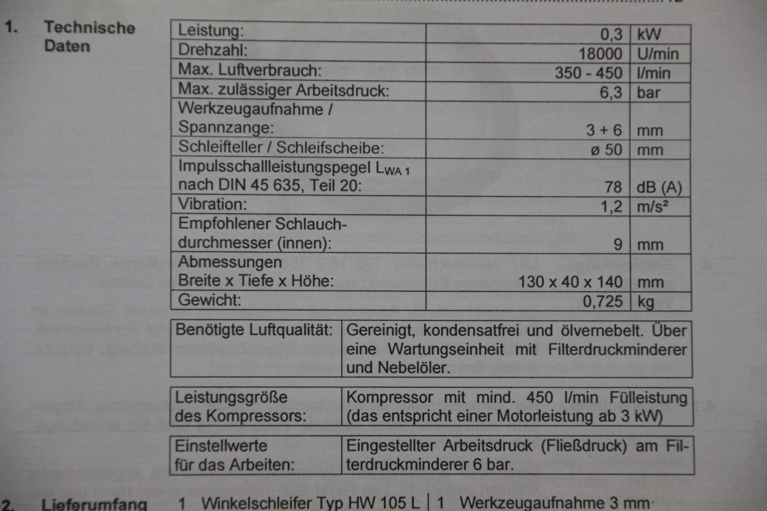 Type of machine: pneumatic angle grinder