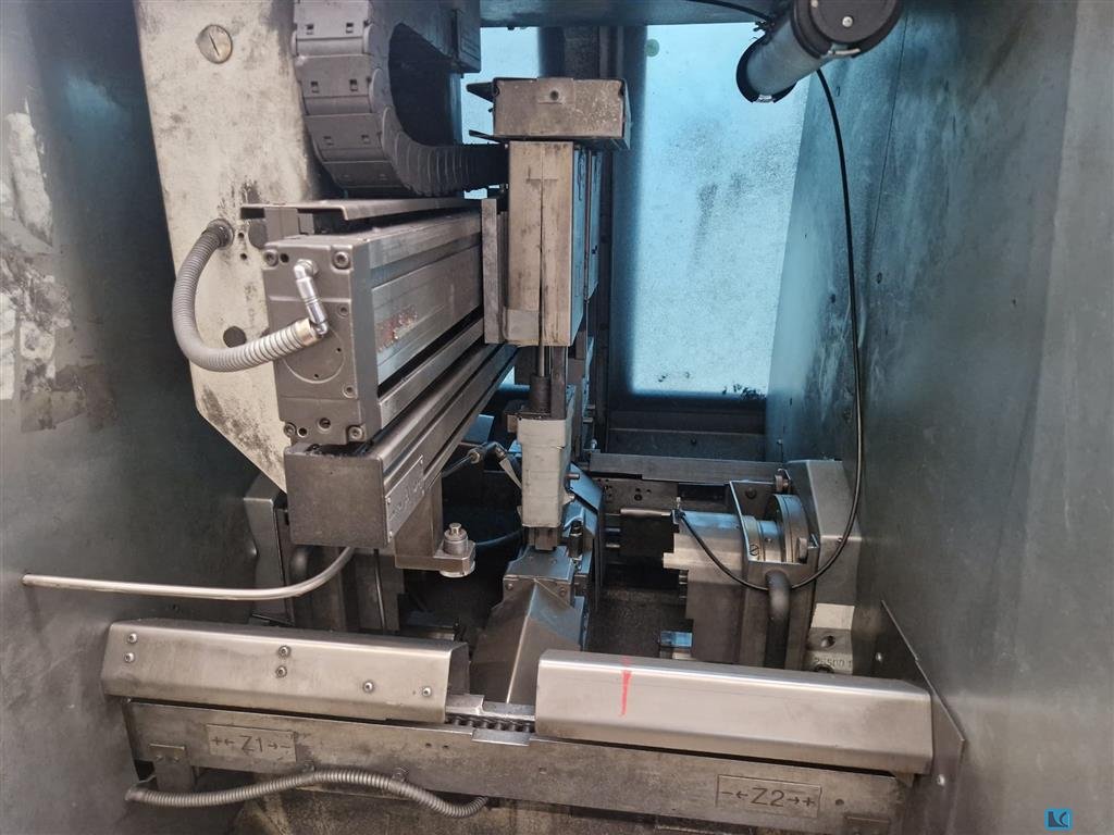A complete cut-off grinding system is available. System components: 1) Cut-off grinding machine Harald Baumgarten. 2) Bundle loader Sema Systemtechnik. 3) Bar breaking device. 4) Bar rotating drive and measuring station. 5) Weighing station with section sorting. 6) Extraction and filter system. 7) Soundproof cabin with safety fencing. 8) Four-column press Winter. 9) Hydraulic power unit with pumps. 10) Control cabinet and operator panel. Documentation available. An on-site inspection is possible.