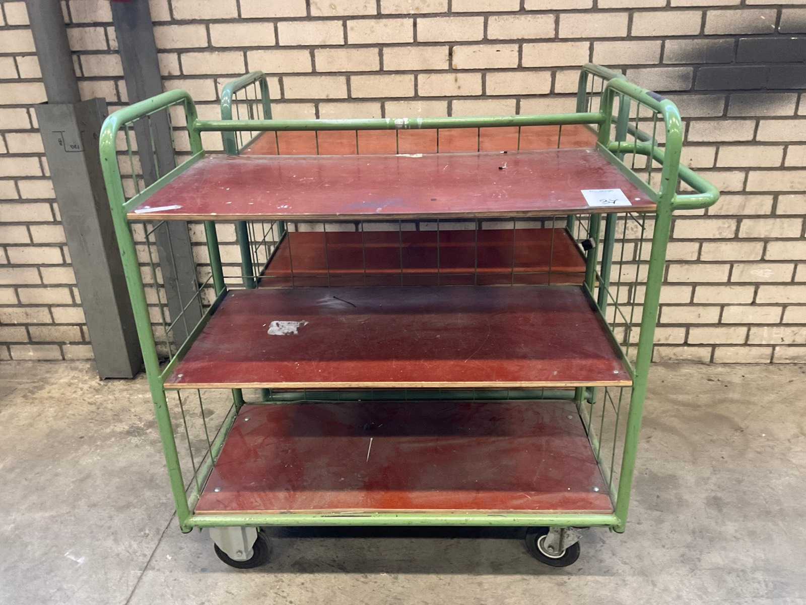 Shelf trolley PAGUS shelf space: 1210 x 540 mm stainless steel frame ! plastic floors ! As good as new ! Wheels not steerable ! (Interchangeable) Dimensions: 1350 x 610 x 1760 mm