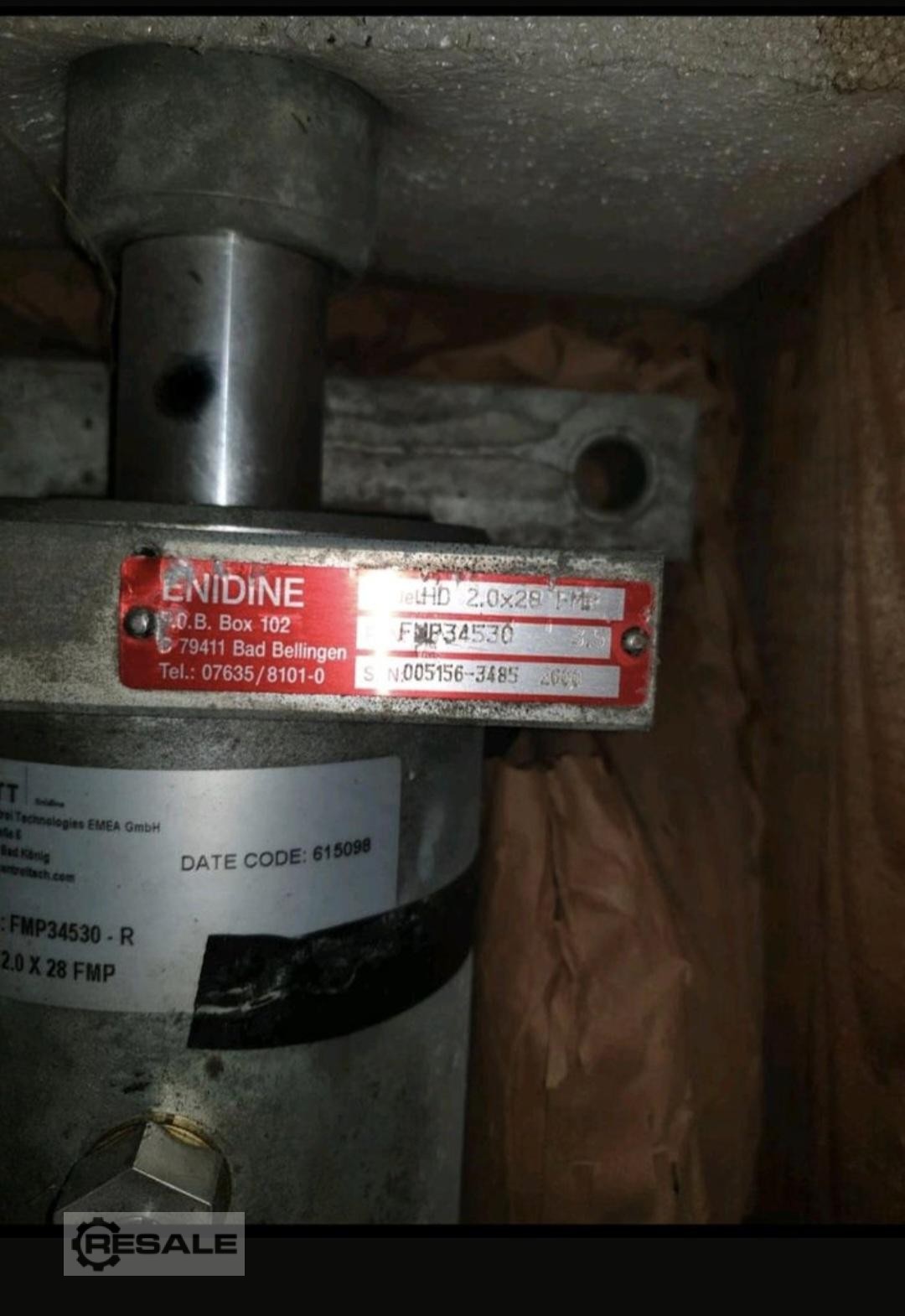 ENIDINE HD 2.0 x 28 FMP Industrial Shock Absorber / Hydraulic Buffer – Heavy Duty Damper Sell a large ENIDINE/ITT Enidine Industrial Shock Absorber from stock. Data according to nameplate: Manufacturer: ENIDINE / ITT Enidine Type: HD 2.0 x 28 FMP P/N: FMP34530-R Heavy-duty hydraulic shock absorbers / industrial buffers For mechanical engineering, conveyor technology, crane systems, end stops, industrial plants, etc. The shock absorber is in a sturdy wooden box. Condition see pictures. Probably unused stock, but with traces of bearing and dirt. Function was not checked, therefore sold as stock goods/spare part. Important note: Do not open – component is under pressure according to the warning. Price: 500 € VB Pickup only due to size and weight. Private sale / stock liquidation, no guarantee, warranty or return.