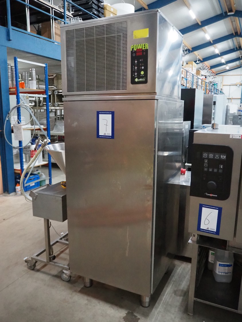 Normann blast chiller, 19 floors, dimensions floors: (19x) 330 mm x 540 mm, total dimensions: 760 mm x 780 mm x 2210 mm. Door is crooked.