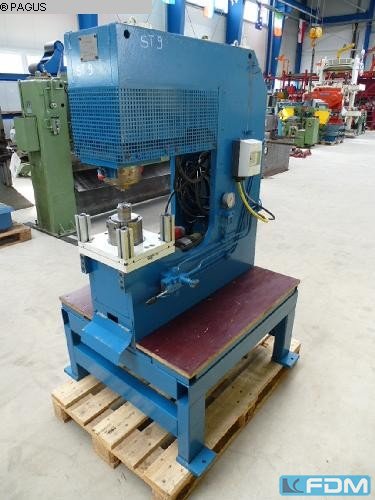 pressure: 40 t throat: 230 mm stroke: 8-88 mm throat: 230 mm no. of strokes: 130 Hub/min ram - range of adjustment: 63 mm table surface area: 560x450 mm ram surface: 250x200 mm hole in the table: Ø 190 mm table height: 790 mm tool hole in ram: Ø 40 mm weight of the machine ca.: 3,0 t dimensions of the machine ca.: 1000x1800x2500 mm The data for this ad was created with ModulMWS - the software solution of LogoTech oHG.