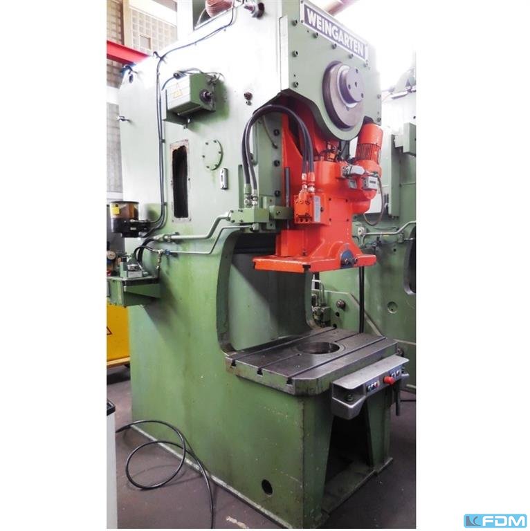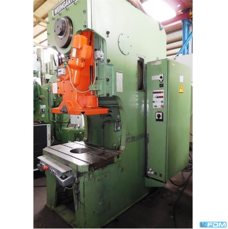 pressure:063 t throat:250 mm stroke:8 - 100 mm Stroke rate:60 - 160 / min Distance table/ram, max. stroke up, adjustment up:415 mm Table surface area:710 x 500 mm Hole in the table:250 / 280 mm Table height above floor:800 mm Passage to the back:290 mm Ram surface:450 x 280 mm Ram adjustment:63 mm Weight:4,3 t Dimensions (WxDxH):1,5 x 1,7 x 2,7 m infinitely variable drive:PIV clutch:pneumatic overload protection in ram:mechanical