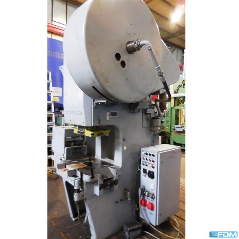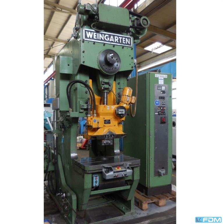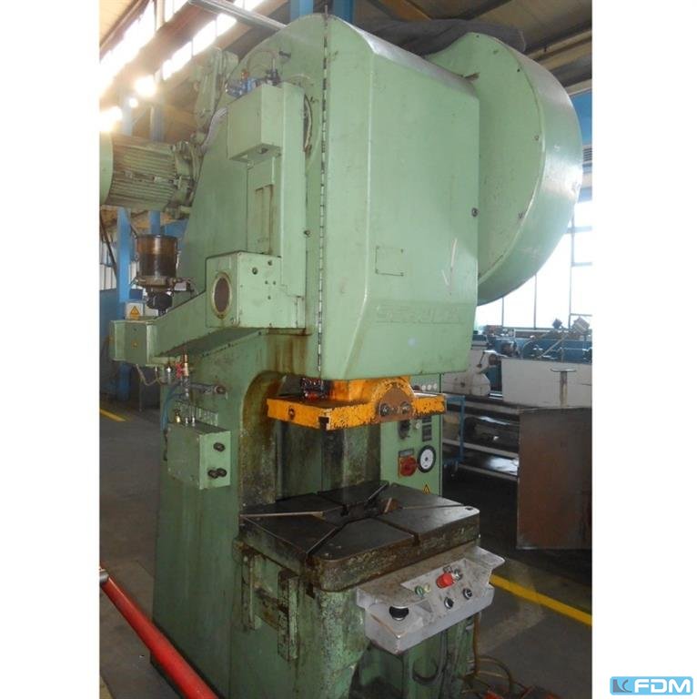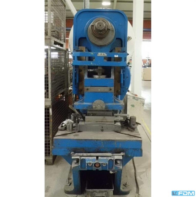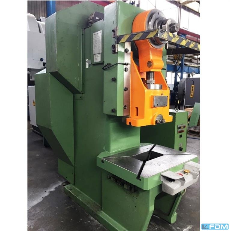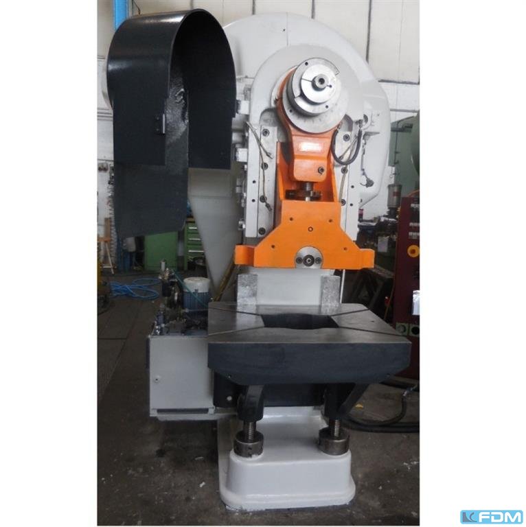 pressure:160 t throat:400 mm stroke:30 - 200 mm no. of strokes:50 /min distance table/ram, max. stroke up, adjustment up:600 mm table surface area:1000 x 770 mm table height over floor:810 mm hole in the table:360 mm Passage to the back:450 mm ram surface:710 x 450 mm ram adjustment:110 mm power requirement:15,0 kW weight:10,5 t Dimensions (WxDxH):1,7 x 2,0 x 3,2 m German Safety: permitted for manual loading:UVV 11.062 - VBG 7n5.1 clutch:hydraulic overload protection in ram:mechanical ram counterbalance:pneumatic