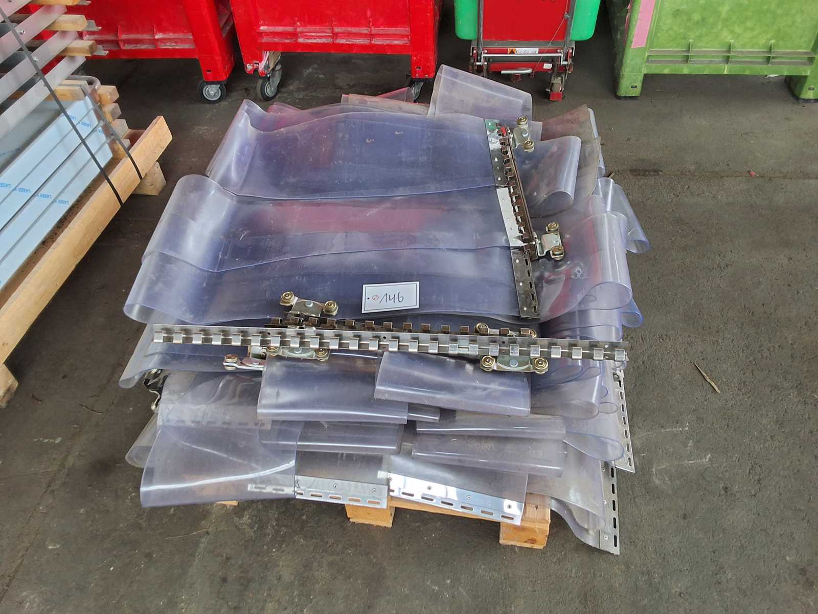 Slat curtain, consisting of individual slats each 4000 mm long and 300 mm wide with hook + roller system a total of 40 slats = 12 m wide and 4 m high Auction-ID: A7-45677-146