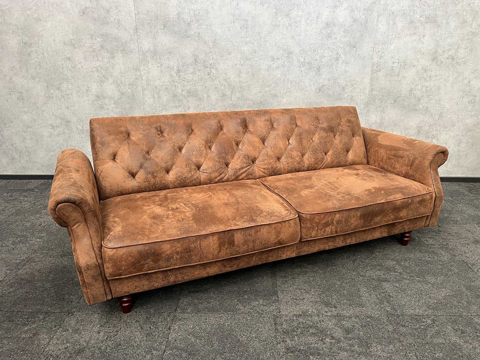 Sofa faux leather black width approx. 180cm, armrests right + left, with side table and carpet grey