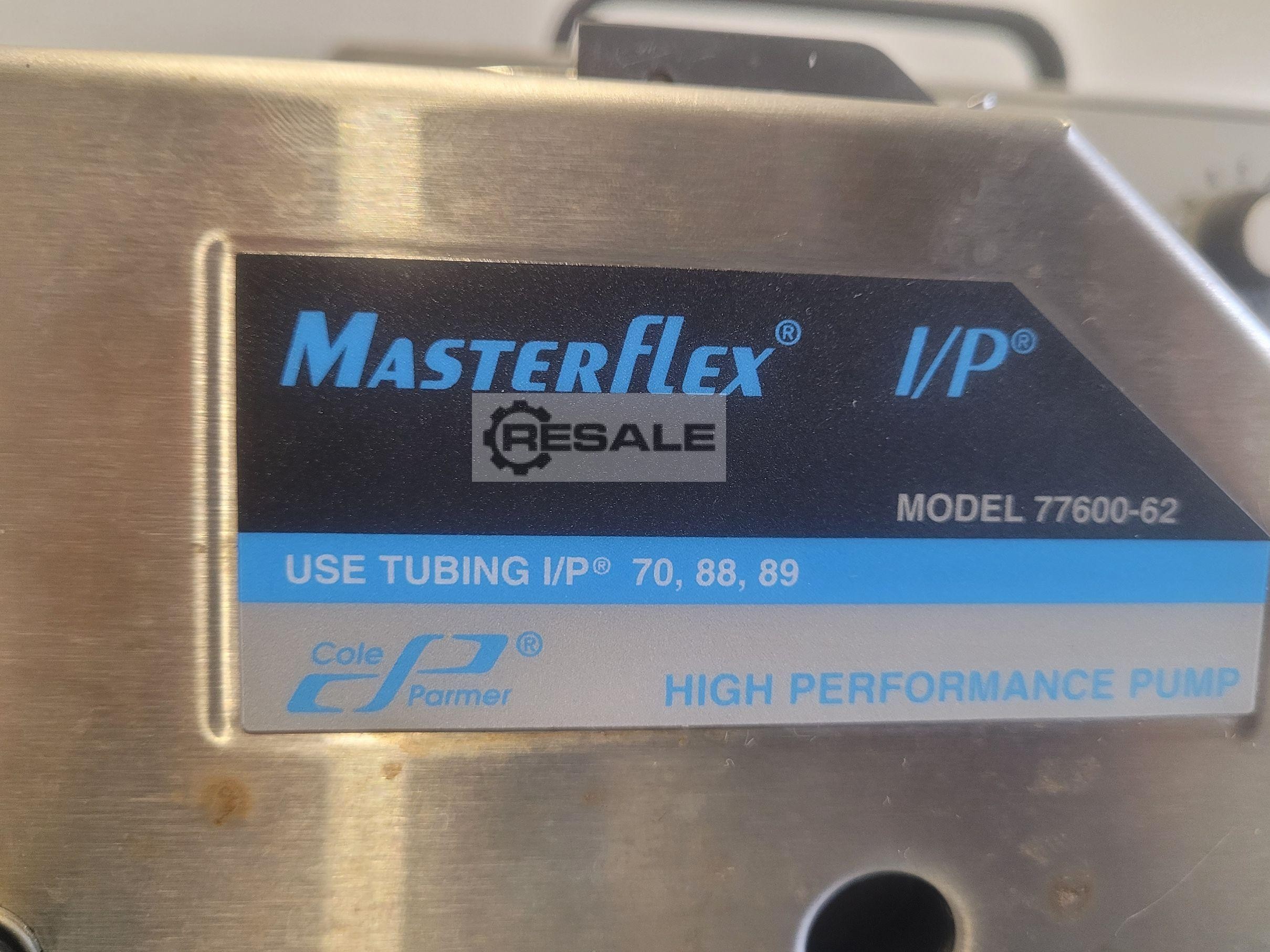 Cole-Parmer Masterflex I/P 77410-05 BDC drive standard peristaltic pump, 77600-62 head Pump rotation speed: 65 to 650 RPM With 77600-62 high-performance pumphead with thermoset polyester housing, stainless steel Flow rate: 0.01 to 19 l/min. Tubing Type: I/P 70, I/P 88, I/P 89 Equipment tested