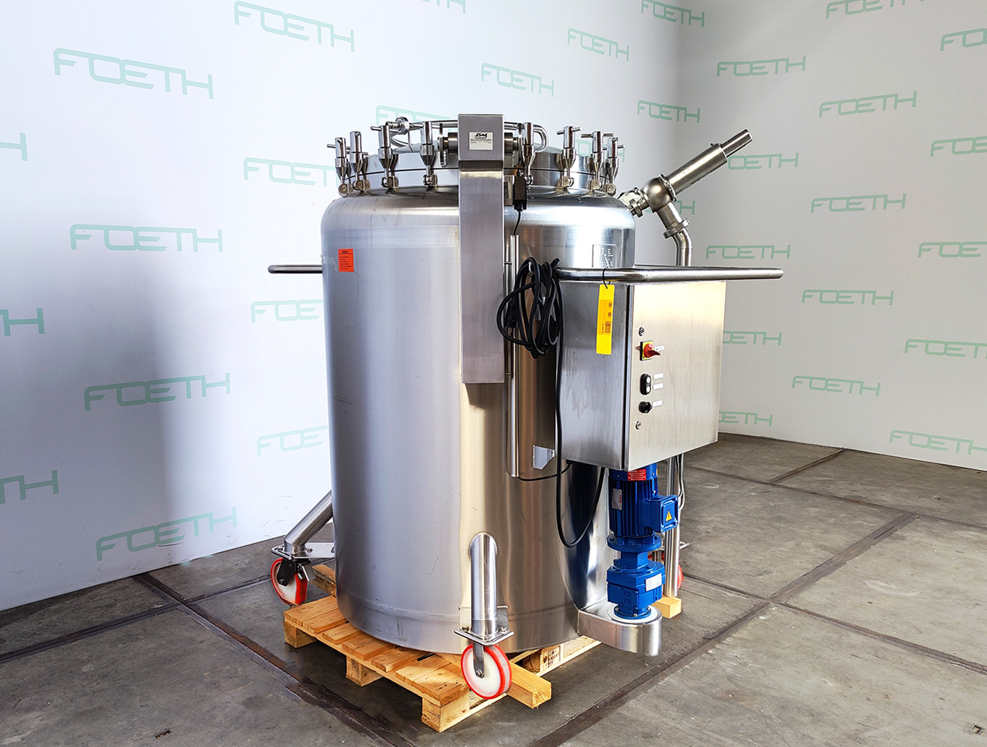 General SKU227W228 MakeGPI b.v. TypeV-015 No.22-175-1 Year of construction2002 Mounted on legscheck with wheels Pressure Working pressure2 Bar Vacuum possiblecheck Main Features MaterialStainless steel Volume1800 Ltr. Motor1.1 KW Specified Features - Stirring vessel MaterialStainless steel 1.4404 (316L) Closed stirring vesselcheck Capacity1800 Ltr. Vessel sizesDia. 1250x1500 mm Slope bottomcheck Dished top sidecheck With covercheck with 2 CIP nozzles OutletDia. 25 mm Max. temperature150°C With paddle stirrercheck Motor1,1 kW, 1400 rpm (EX) Speed mixing shaft35rpm Information LocationBarneveld With switchgearcheck Floorspace1,9x1,4 m Total height2,0 m CEcheck ATEX compatiblecheck Extra Specificationsadjustable stirring speed by means of a frequency converter. SpicesPlastic & polymersCatalysts & fillersFeed additivesSolventsStirring vesselsDetergent & su ...