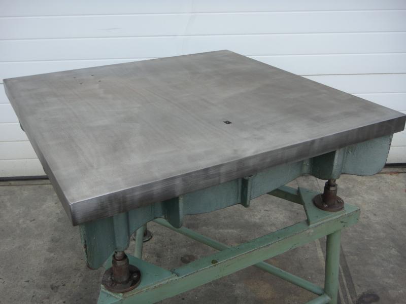 Straightening and welding plate cast steel-grey cast iron heavily ribbedformer marking plate and measuring plateheavy straightening plateLength 1000 mmWidth 1000 mmThickness 230 mmWorking height 970 mmPanel thickness 38 mm throughout- Metal baseWeight 450 kg; used
