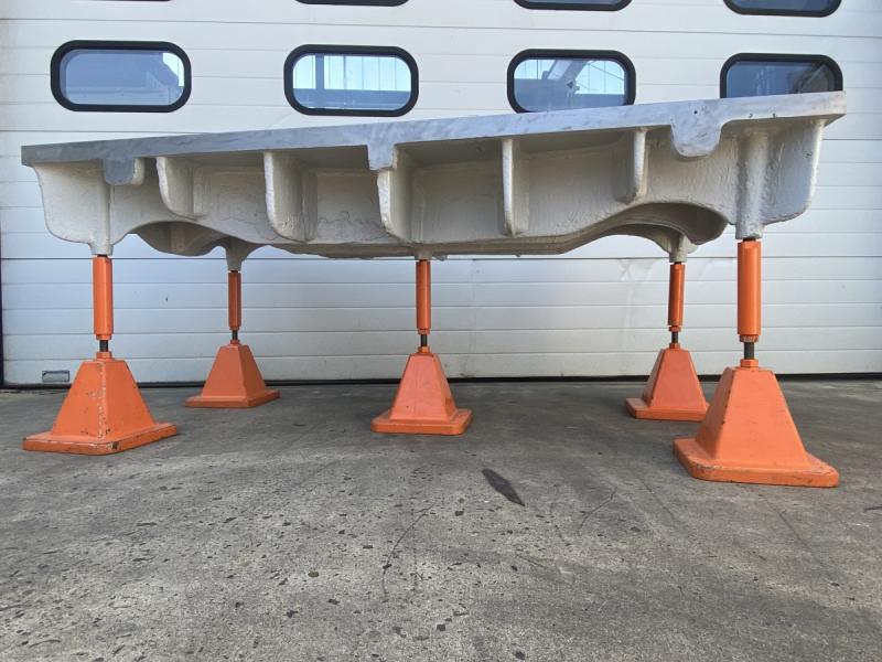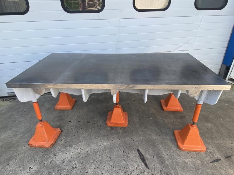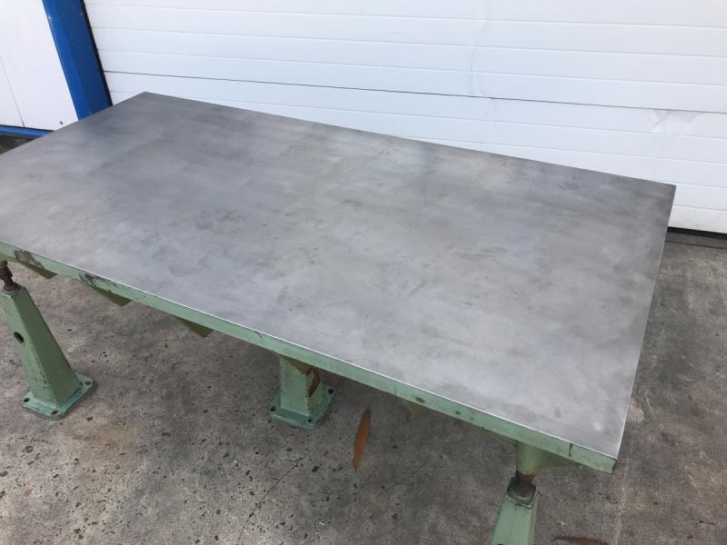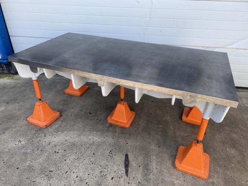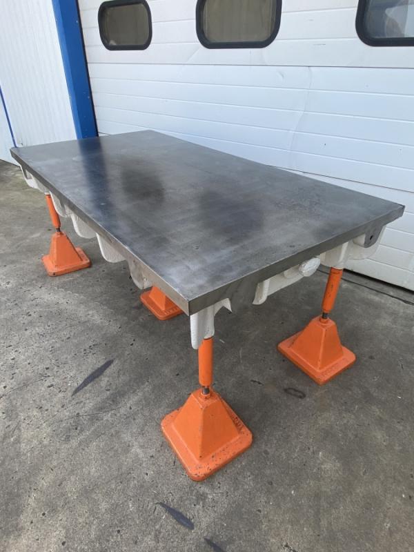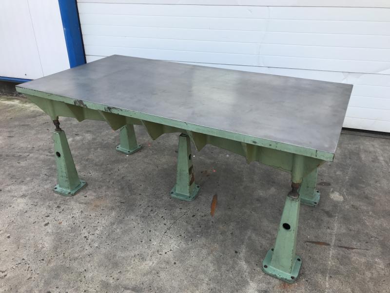 Straightening and welding plate cast steel-grey cast iron heavily ribbedformer marking plate and measuring plateheavy straightening plateLength 2000 mmwidth 1000 mmthickness 160 mmworking height 850 mmplate thickness approx. 35 mm throughout- 3 pieces height-adjustable feetWeight with feet 680 kggood condition; used