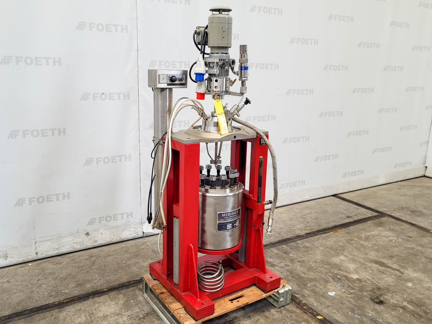 General SKU412T1301 MakeMedimex TypeMed. 260 No.170730 Year of construction1996 Mounted on legscheck Pressure Working pressure300 Bar Main Features MaterialStainless steel Volume1 Ltr. Motor0.12 KW Specified Features - Stainless Steel Reactor MaterialStainless steel 1.4571 (316Ti) Stainless Steel Reactors Reactorcheck Capacity1 Ltr. Vessel sizes100x140 mm Top connections5/8 (2x), 3/4 (2x), 1/4 (2x) Half coil jacketedcheck Max. temperature300 °C With propellor stirrercheck Motor0,12 kW, 220-240/380-420 volt, 1390 rpm Information LocationBarneveld Floorspace0,45x0,45 m Total height1,95 m Weight180 kg ATEX compatiblecheckStainless Steel ReactorsCatalysts & fillersSolventsDetergent & surf.Other pharmaceuticsCosmeticsOrganicsLubricants & oleoSolid pharmaceuticsDyes & pigmentsAPIMinerals & inorganicPlastic & polymersAgrochemicalsRubberOther chemicalFine chemicals ...