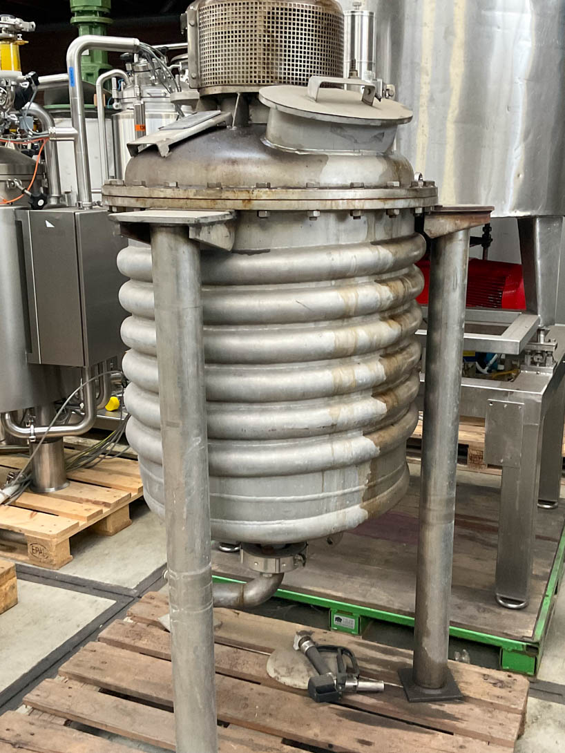General SKU213T157 MakeAlbi Alois Binderberger LocationBarneveld Pressure Working pressure1.5 Bar Vacuum possiblecheck Working pressure jacket6 Bar Main Features MaterialStainless steel Volume8000 Ltr. Motor7.5 KW Specified Features - Stainless Steel Reactor MaterialStainless steel 1.4571 (316Ti) Stainless Steel Reactors Reactorcheck Capacity8.000 Ltr. (max. 10.000 Ltr.) Vessel sizesdia. 2200x3562 mm Conical bottomcheck Dished top sidecheck Manholecheck Top connectionsDN40 (4x), DN65, DN100 OutletDN65 With jacketcheck Half coil jacketedcheck Max. temperature-25/150 °C With paddle stirrercheck (Stelzer: Vortex) Motor7.5 kW (Ex) Speed mixing shaft5,6-56 Rpm Information No.625 Year of construction1983 Mounted on legscheck Floorspace2,6x2,6 m Total height4,8 m ATEX compatiblecheck Extra SpecificationsINCLUDING NEW MECHANICAL SEAL Stainless Steel Reactors ...