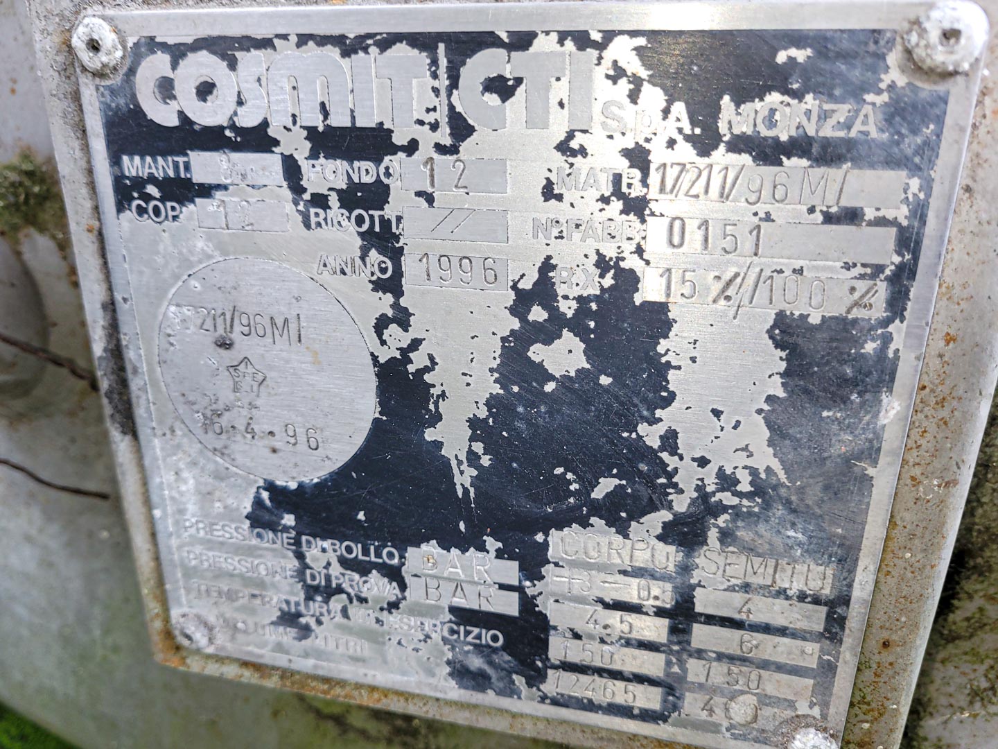 General SKU035B246 MakeCosmit/CTI Monza No.0151 Year of construction1996 Mounted on legscheck Pressure Working pressure3 Bar Vacuum possiblecheck Working pressure jacket4 Bar Main Features MaterialStainless steel Volume12465 Ltr. Motor90 KW Specified Features - Stainless Steel Reactor Reactorcheck Capacity12.465 Ltr. Vessel sizesDia. 2200 x 2400 mm Dished bottomcheck Dished top sidecheck ManholeDia. 450 mm Top connections(10x) OutletDia. 100 mm Half coil jacketedcheck 460 Ltr. Max. temperature150°C With gate type stirrerequipped with scrapers (motor 30kW: 9 rpm Ex) With paddle stirrer/screw ribbon stirrer type DM-1250/300 (40 rpm) Motor90,0 kW (400 V, 1460 rpm) Stainless Steel Reactors MaterialStainless steel 1.4301 (304) Information LocationBarneveld Floorspace2,8 x 2,8 m Total height7,0 m Weight7500 kg ATEX compatiblecheckStainless Steel ReactorsCat ...