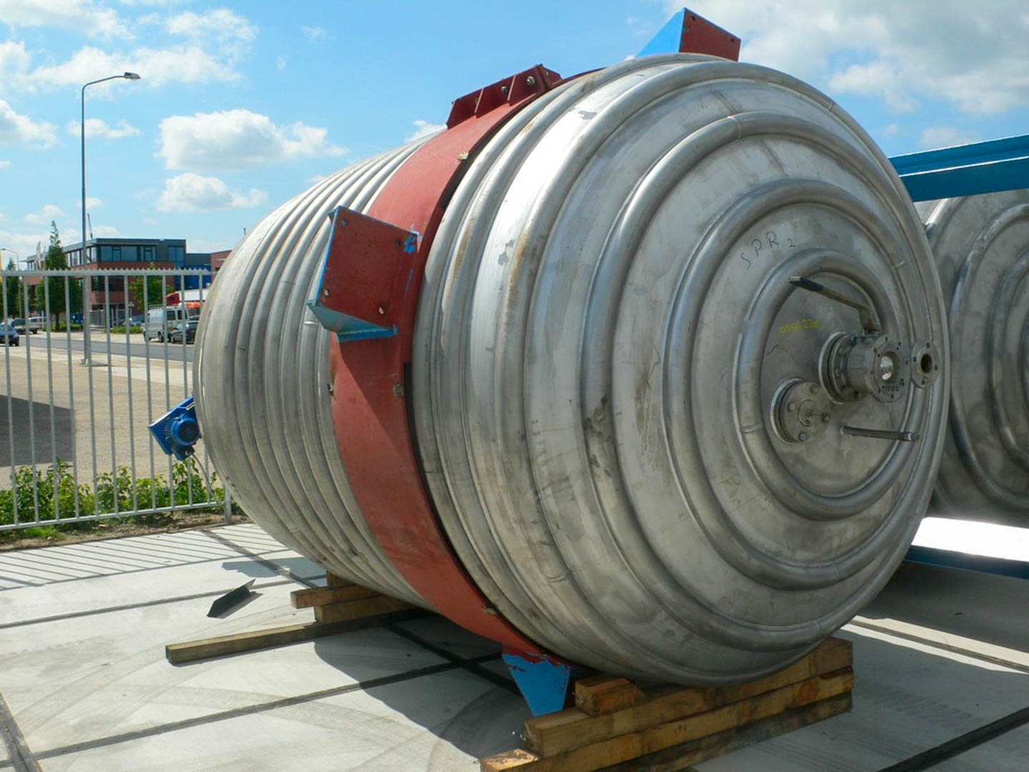 General SKU345S764 MakeHinke Tankbau GmbH (DE) No.8294 Year of construction2000 LocationBarneveld Pressure Working pressure3.5 Bar Vacuum possiblecheck Working pressure jacket9 Bar Vacuum possible jacketcheck Main Features MaterialStainless steel Volume9640 Ltr. Motor32 KW Specified Features - Stainless Steel Reactor Reactorcheck Capacity8000 Ltr. (9640 Ltr.) Vessel sizesdia.2000x2500mm Dished bottomcheck Dished top sidecheck ManholeDN600 Top connectionsDN200, DN150, DN100, DN80, DN50 OutletDN80 With jacket340 Ltr. Max. temperature-25/200 °C With paddle stirrercheck (Stelzer SDR 45-12 S) Motor2,6-32 kW 40-400 Volt Speed mixing shaft101 rpm Stainless Steel Reactors MaterialStainless steel 1.4571 (316Ti)Stainless Steel ReactorsCatalysts & fillersSolventsDetergent & surf.Other pharmaceuticsCosmeticsOrganicsLubricants & oleoSolid pharmaceuticsDyes & pigmentsAP ...