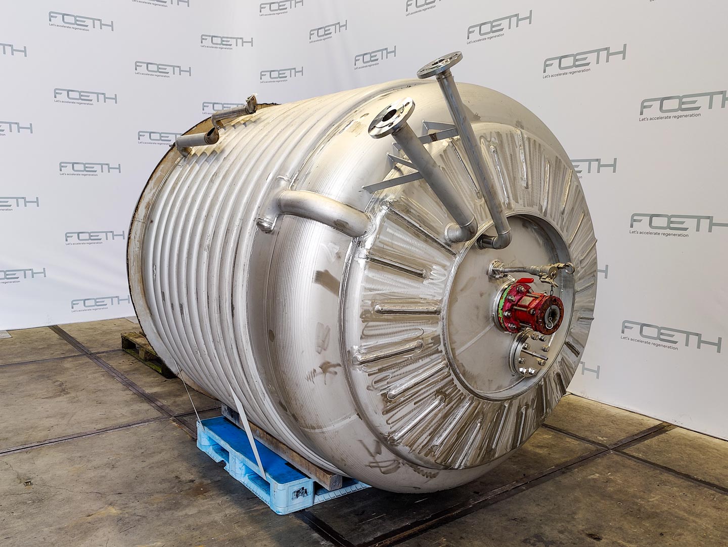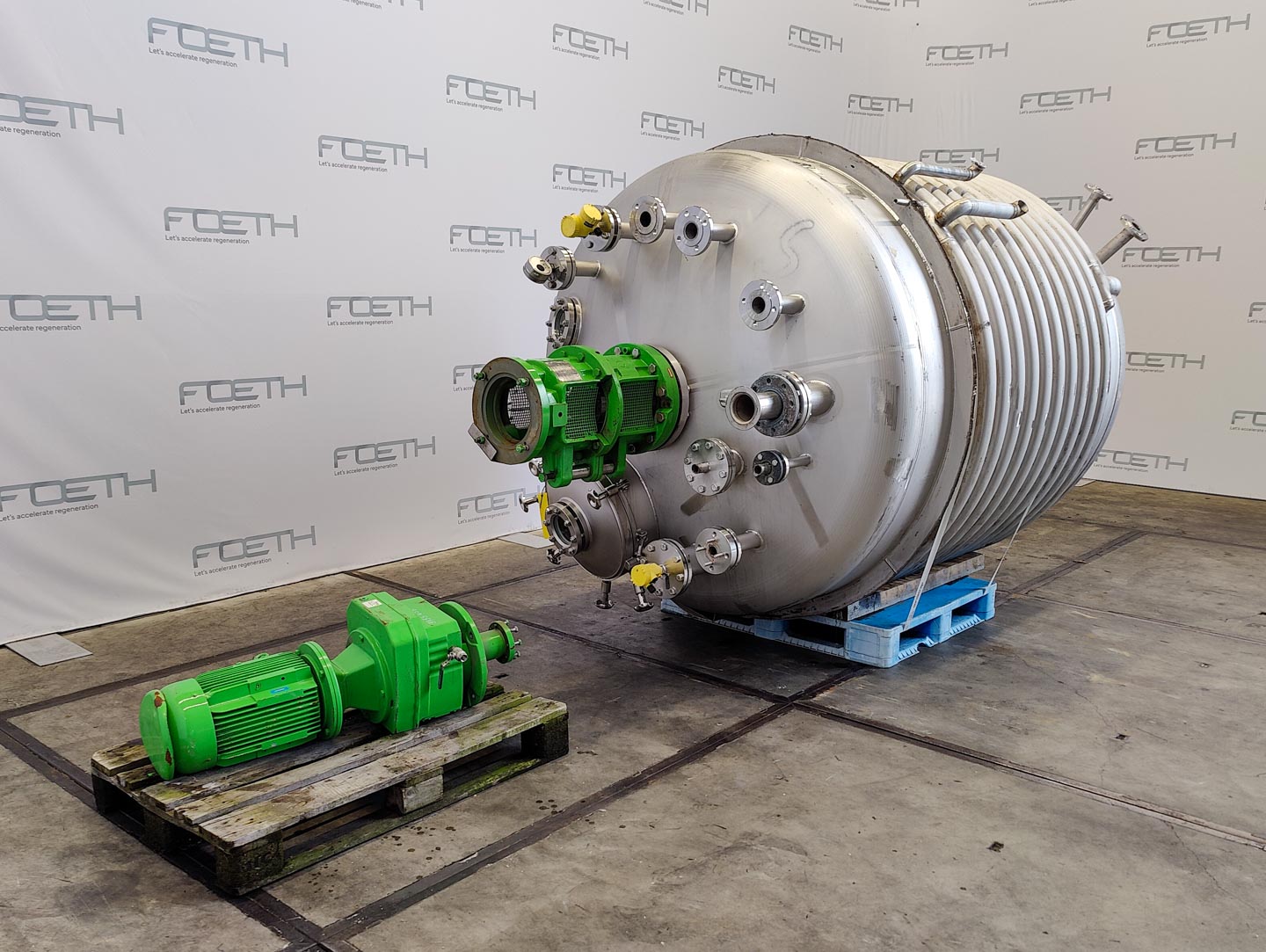 General SKU274P409 MakeHellmich Behälter- und Apparatebau (DE) No.4972 Year of construction1998 Mounted on legscheck Pressure Working pressure6 Bar Working pressure jacket2.5 Bar Main Features MaterialStainless steel Volume13300 Ltr. Motor15 KW Specified Features - Stainless Steel Reactor MaterialStainless steel 1.4541 (321) Stainless Steel Reactors Reactorcheck Capacity13300 Ltr Vessel sizesdia.2300mm x2700mm Dished bottomcheck Dished top sidecheck Manholedia.500mm Top connections(8x)dia.80mm, (3x)dia.50mm, dia.100mm Outletdia.100mm Half coil jacketed(488 Ltr) Max. temperature120 degr.C. With paddle stirrertype FGRLR-80D Motor15 KW, 290/500 Volt Speed mixing shaft59 rpm Information LocationBarneveld Floorspace2,6x2,6 M Total height5,5 M Weight6000 KGStainless Steel ReactorsCatalysts & fillersSolventsDetergent & surf.Other pharmaceuticsCosmeticsOrganics ...