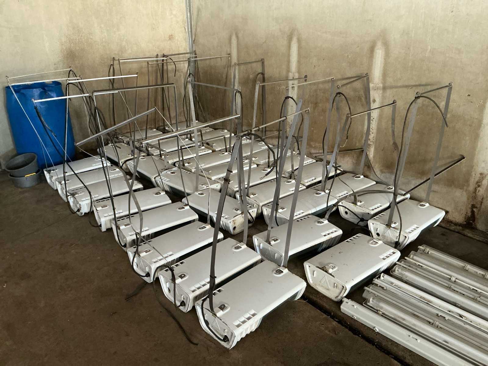 Consists of: batch of 34 industrial fixtures, type: Agrilight AL2007 400, suitable for lamp: 400W HPS / MH, supply voltage: 230 Volt, frequency: 50 Hz, power consumption: approx. 2.2 Ampere, IP64 (dustproof and splash-proof), thermally protected, insulation class: Class I (grounded), coated aluminum, tempered glass / impact-resistant protective glass, hanging bracket / pendant mounting, certification: CE, including hanging bracket, including cabling, af, measurement per lamp 560x330x160mm, Sale as a complete batch. Auction-ID: A1-40133-311